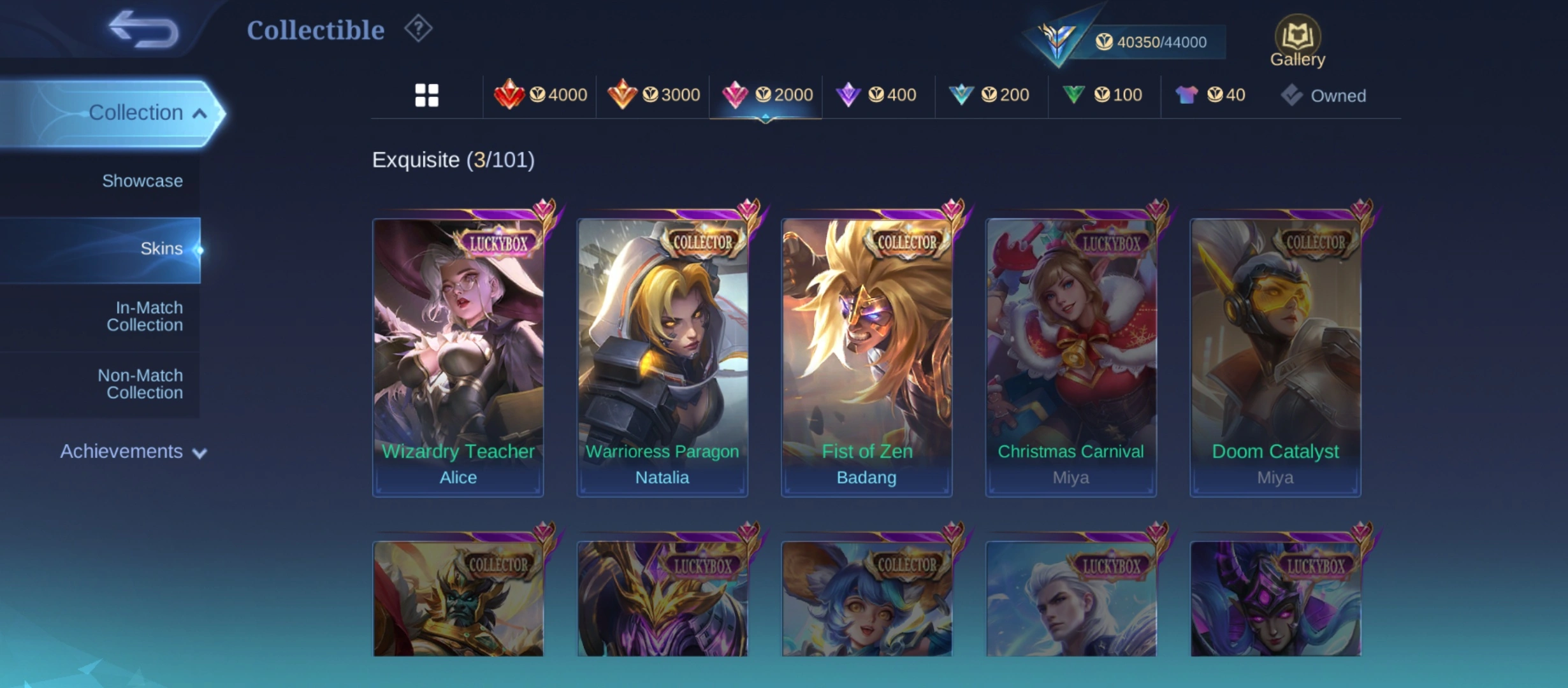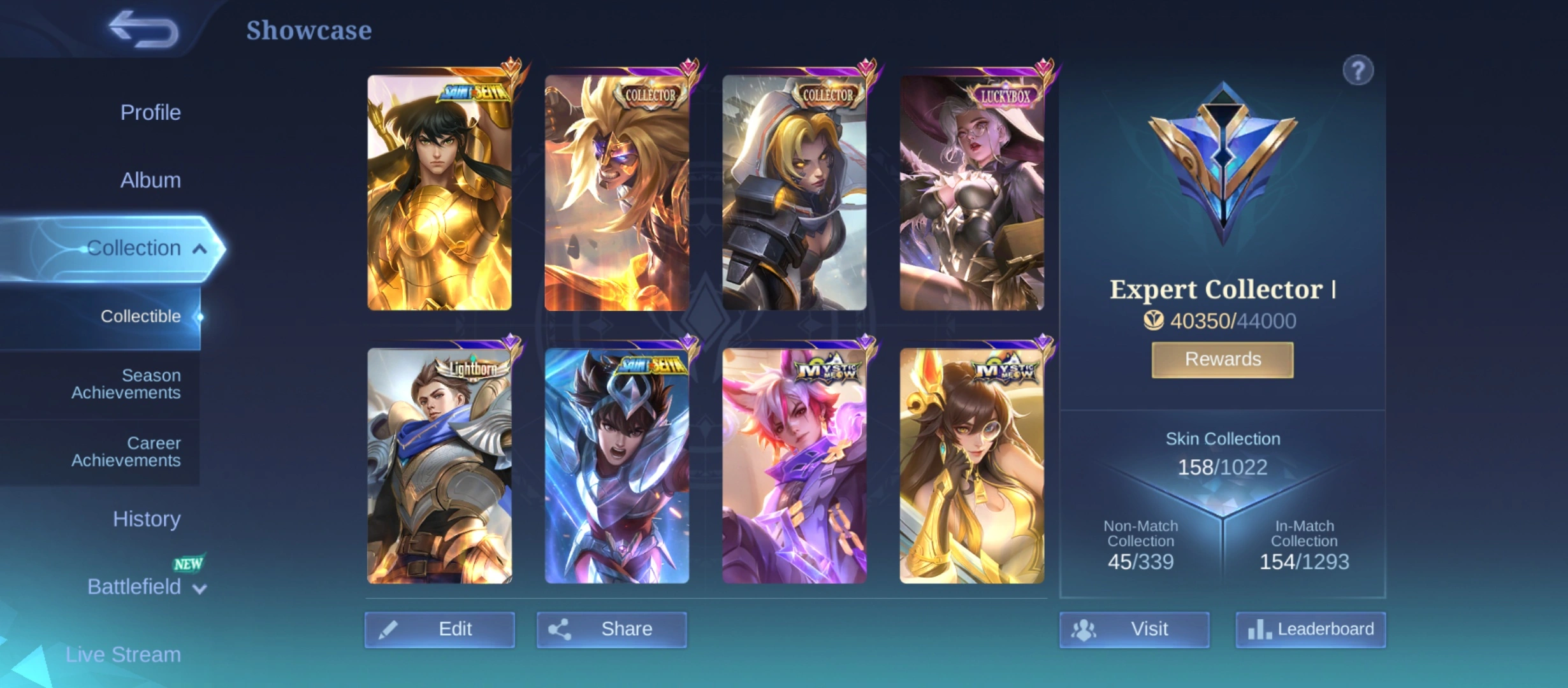 GG907|Lvl 56|EXPERT CC 1|5 EMBLEM MAX|100 HEROES|158 SKIN|CHOU LIBRA GOLD SAINTSEIYA|2 COLLECTOR|BADANG COLLECTOR|ALICE LUCKYBOX|7 EPIC SKIN|EPIC 2