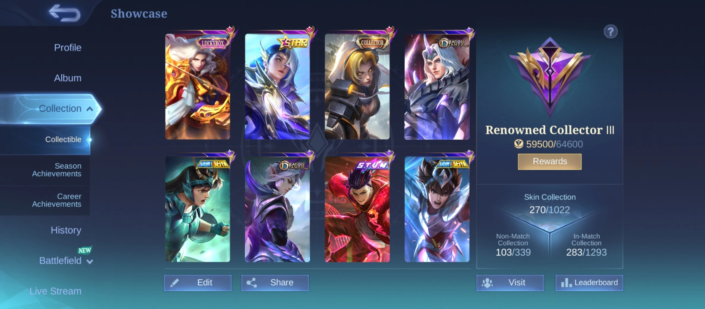 GG911|Lvl 106|RENOWNED CC 3|ALL EMBLEM MAX|CRAWLERS EPIC RECALL|270 SKIN|130 HEROES MAX|LANCELOT LUCKYBOX|LESLEY ANNUAL|CHOU STUN|2 SAINTSEIYA|10 EPIC