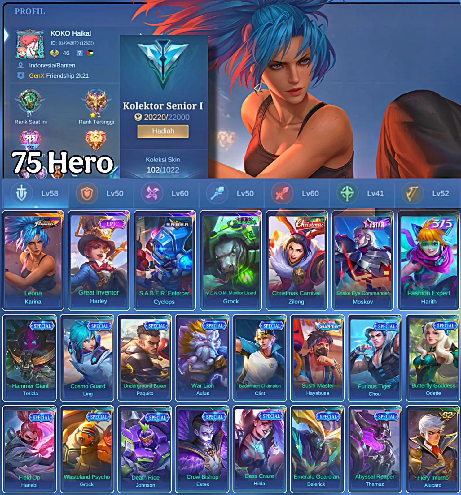 HERO 75 SKIN 102 | EMBLEM GOOD | KOF KARINA | EPIC HERLEY | HERO GOOD | SKIN GOOD | INSTAN DELIVERY