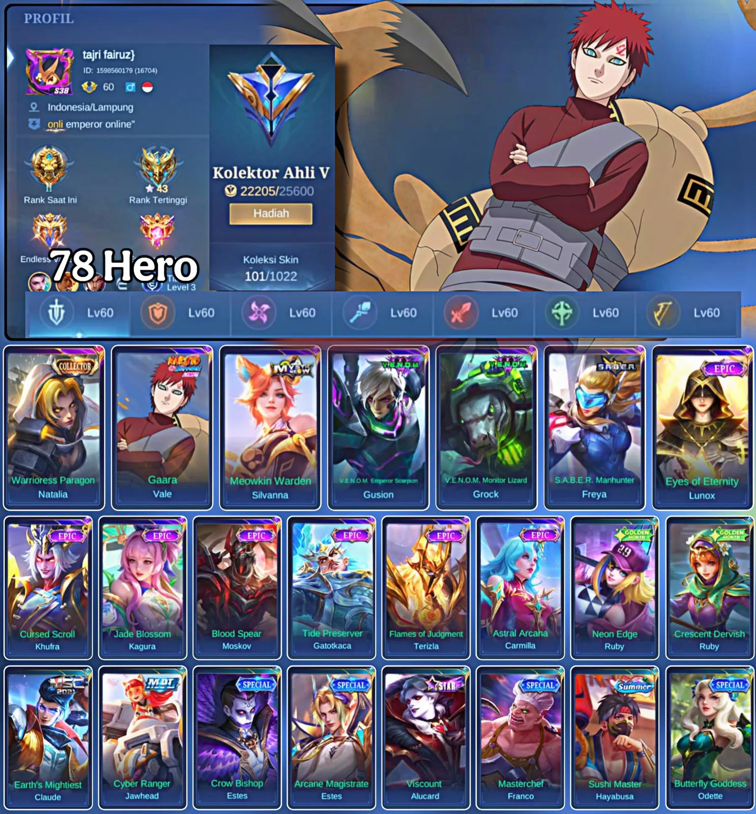 HERO 78 SKIN 101 | EMBLEM ALL MAX | COLECTOR NATALIA | VALE GARA | EPIC KHUFRA | EPIC URANUS| HERO GOOD | SKIN GOOD | INSTAN DELIVERY