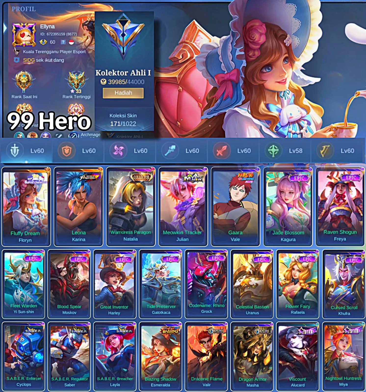 HERO 99 SKIN 171 | EMBLEM ALL MAX | COLECTOR NATALIA | FULLYY DREAM | VALE GARA | EPIC KAGURA | HERO GOOD | SKIN GOOD | INSTAN DELIVERY