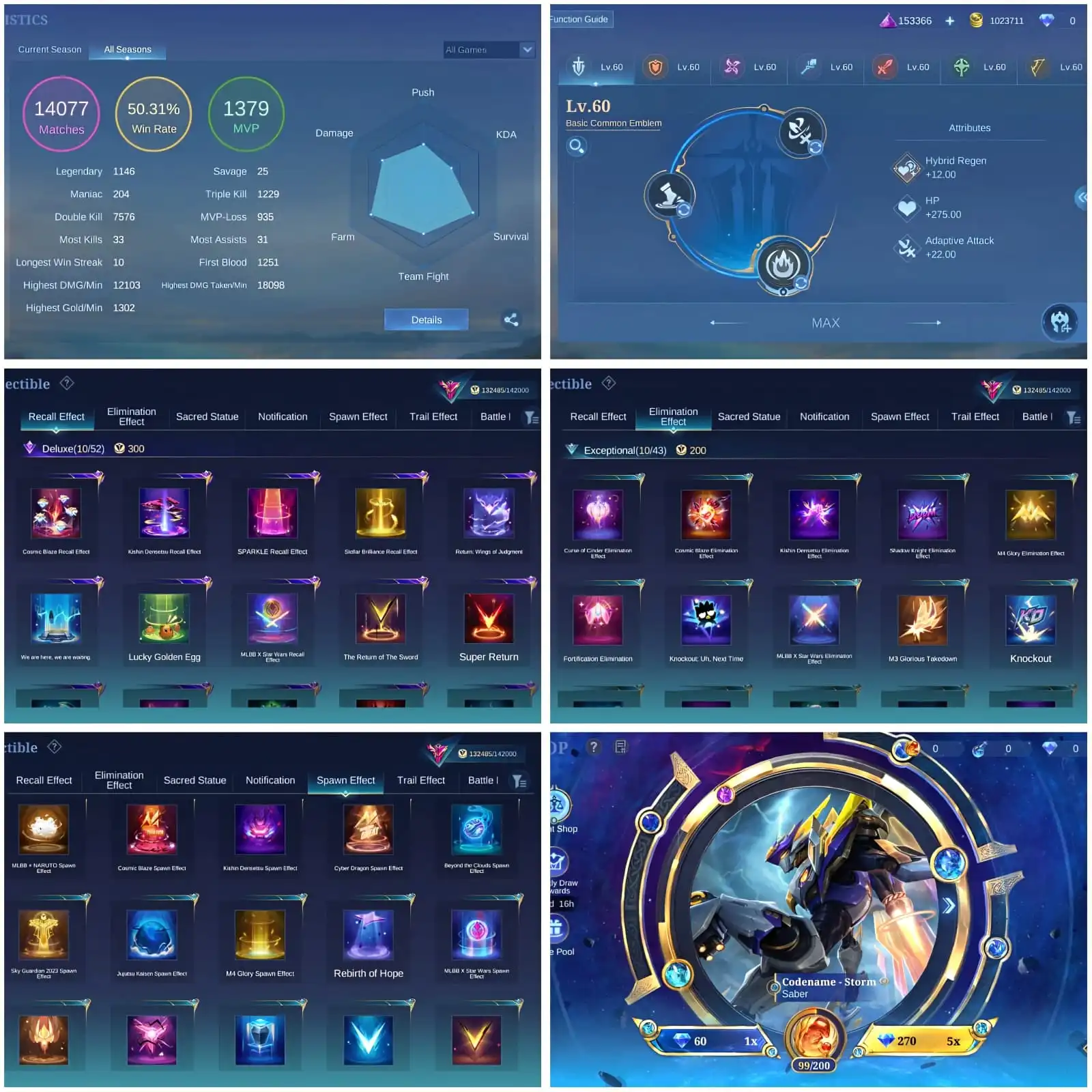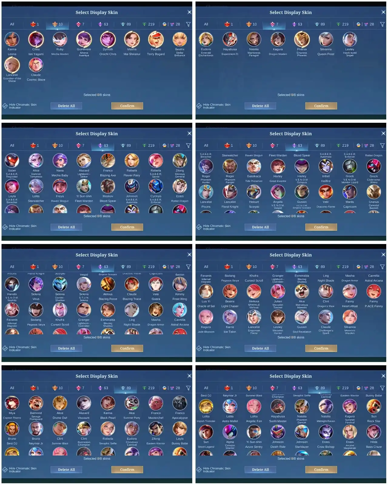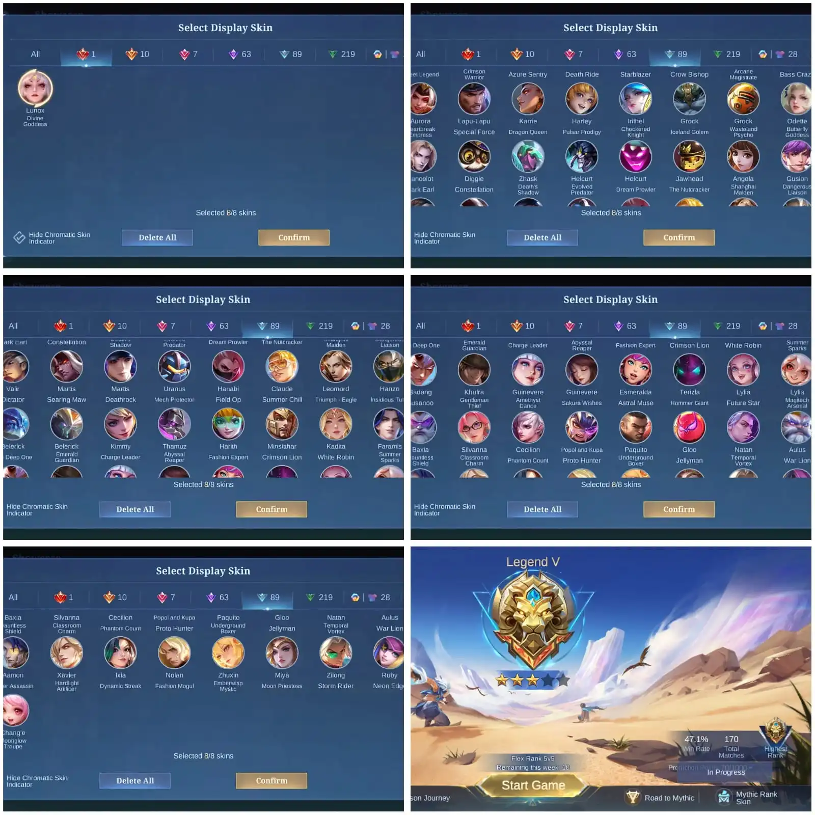 [IOS/ANDROID] CEL LVL 109 | 131 HEROES | 417 SKINS | EXALTED 2 | LUNOX LEGEND ⸱ LANCE KISHIN ⸱ CHOU KOF ⸱ TERRY PAQUITO ⸱ 6 KOF ⸱ 3 COLLECTOR SILVANA PHARSA