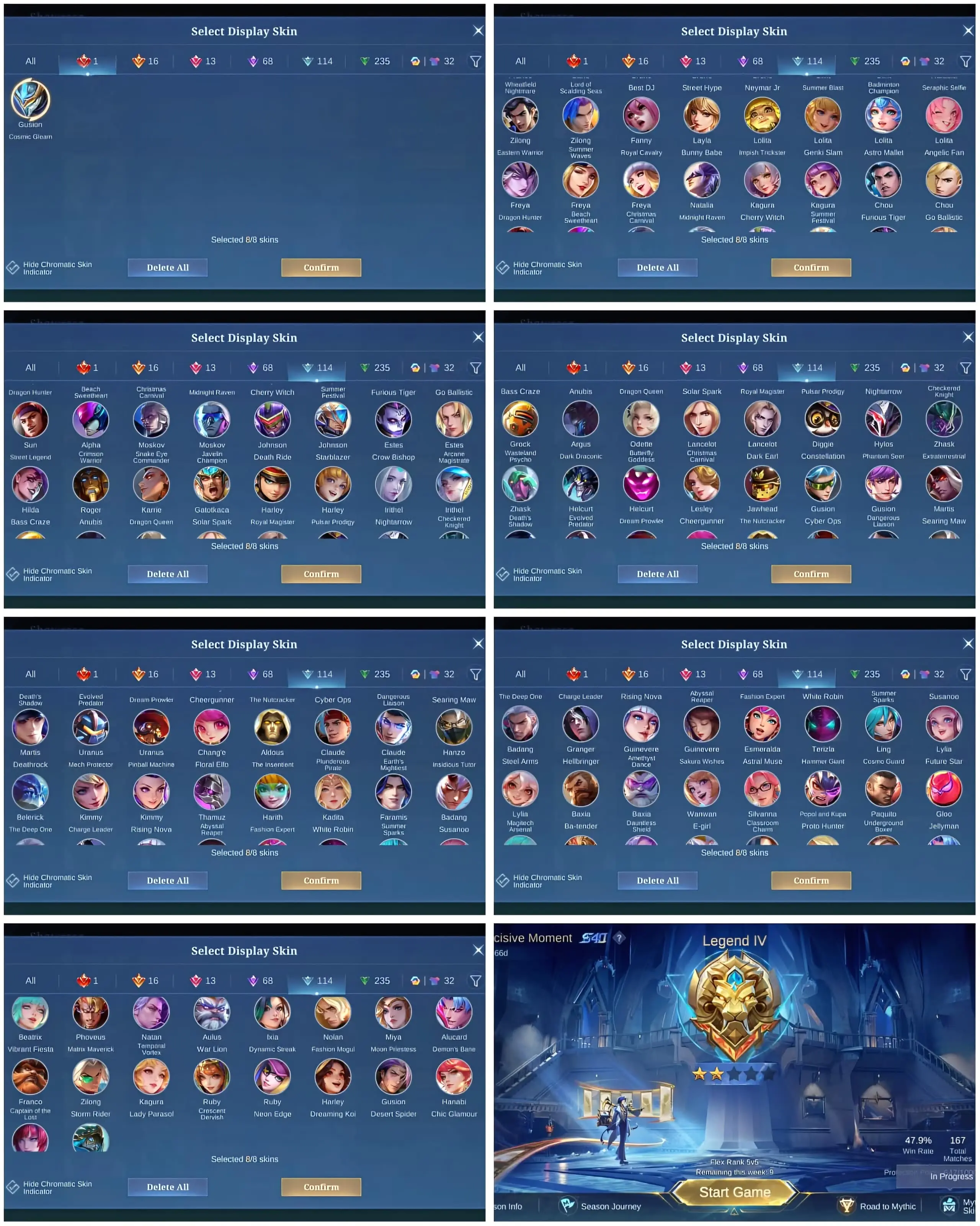 [IOS/ANDROID] CEL LVL 120 | 132 HEROES | 478 SKINS | MEGA 5 | COLLAB | GUSION LEGEND ⸱ JJK GOJO ⸱ HXH ⸱ CHOU GOLD ⸱ NEOBEAST ⸱ ZILONG COLLECTOR ⸱ THAMUZ NEXUS ⸱ ALLSTARS