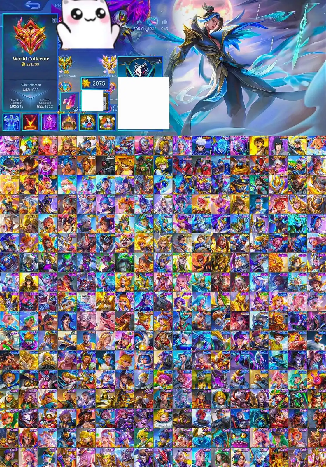 [IOS/ANDROID] CEL LVL 124 | 130 HEROES | 644 SKINS | LUXURY WORLD COLLECTOR | 3 LEGEND ⸱ 6 COLLECTOR WITH LING ⸱ JJK ⸱ AOT ⸱ KOF ⸱ ASPIRANT ⸱ 11.11 ⸱ ZENITH ⸱ STARWARS