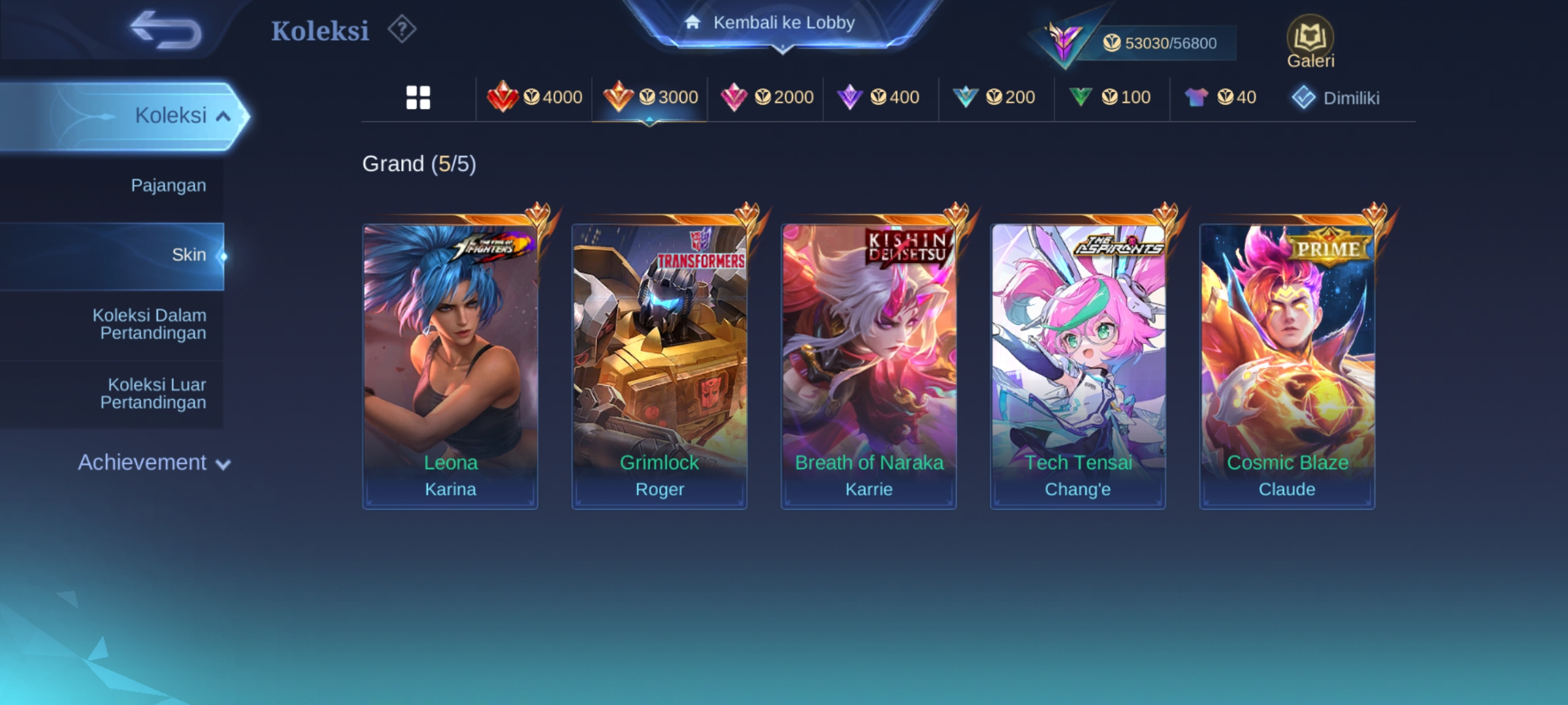 ML-131 Skins 199 [ Kishin Karie ] Diamond 101 / Aspirants Change / Prime Claude / Transformers Roger / Luckybox Irithel