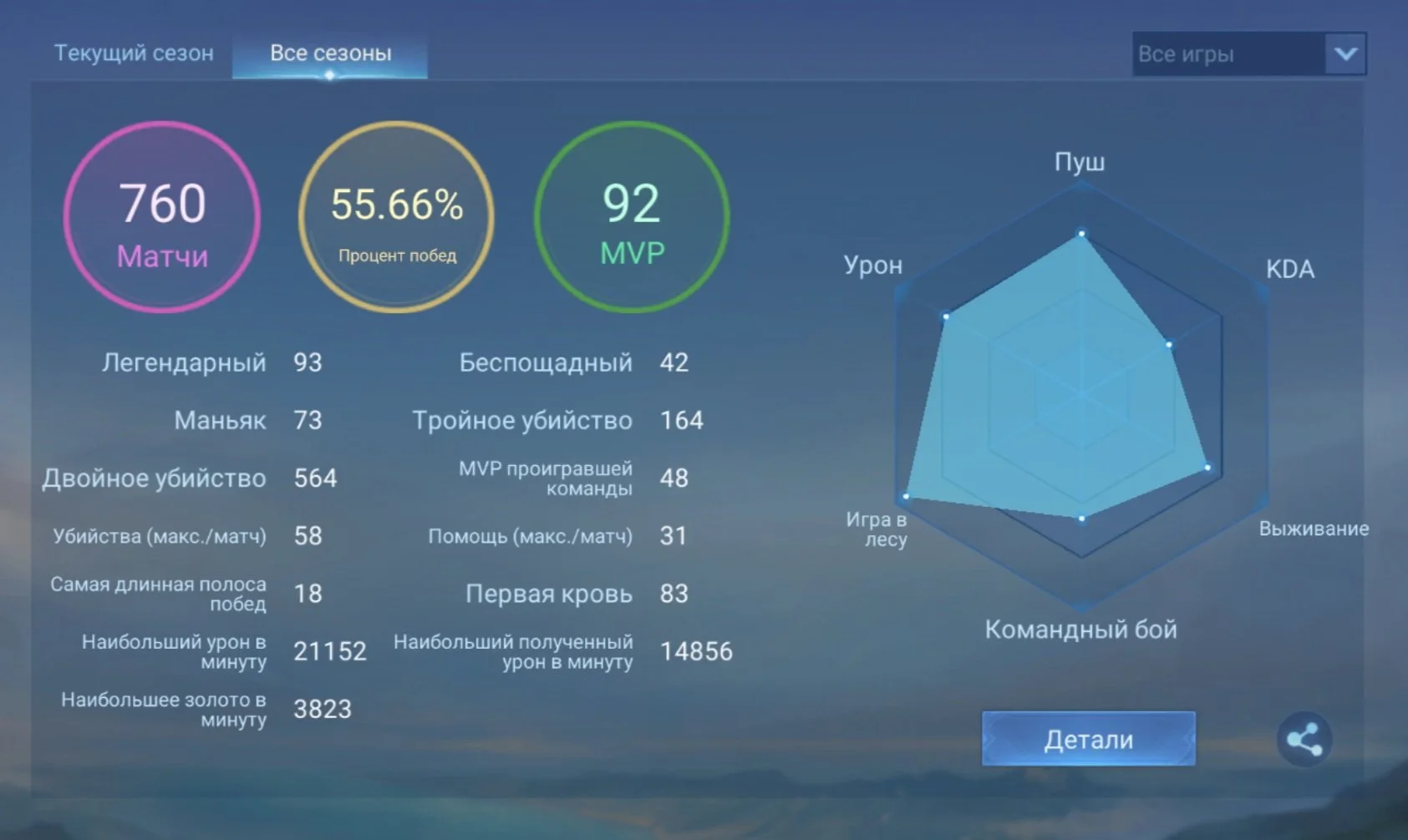 ML491 //Epic Rank, Collector Nana, 73 Skins, 61 Heroes, 55% Winrate, Lifetime Warranty