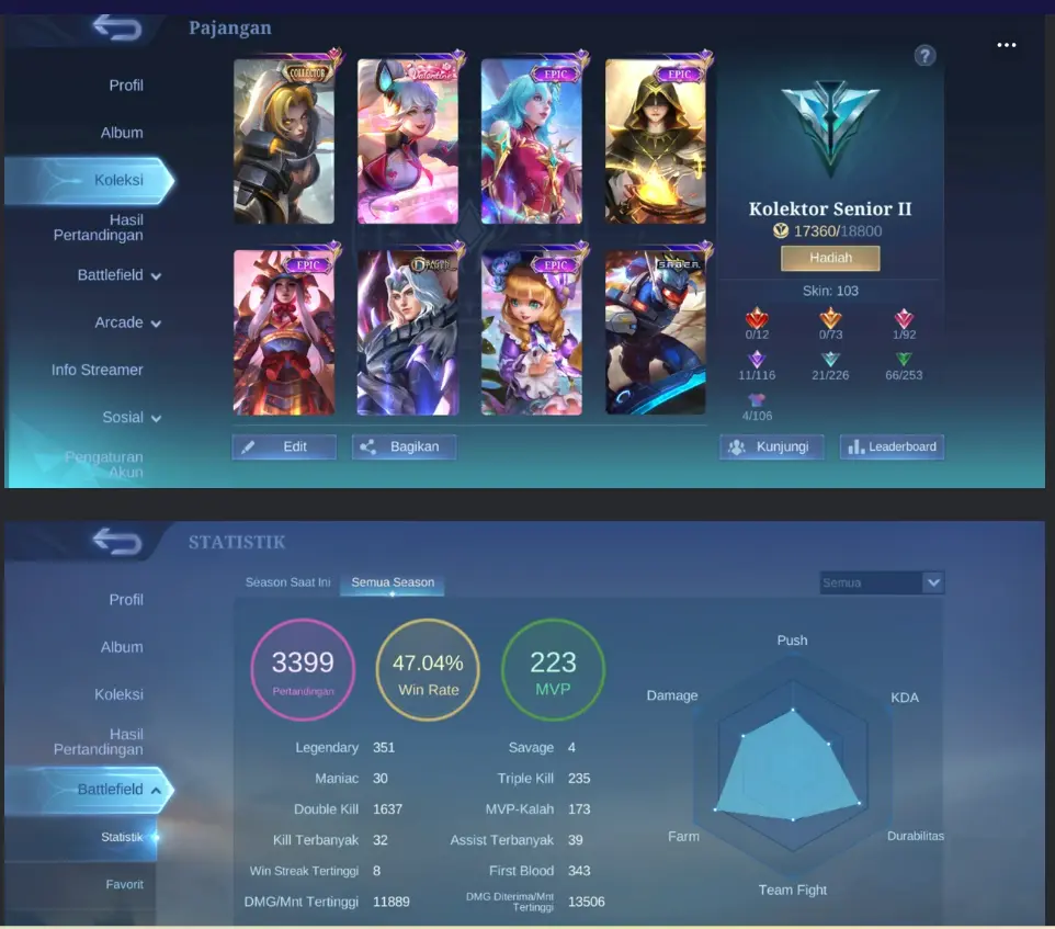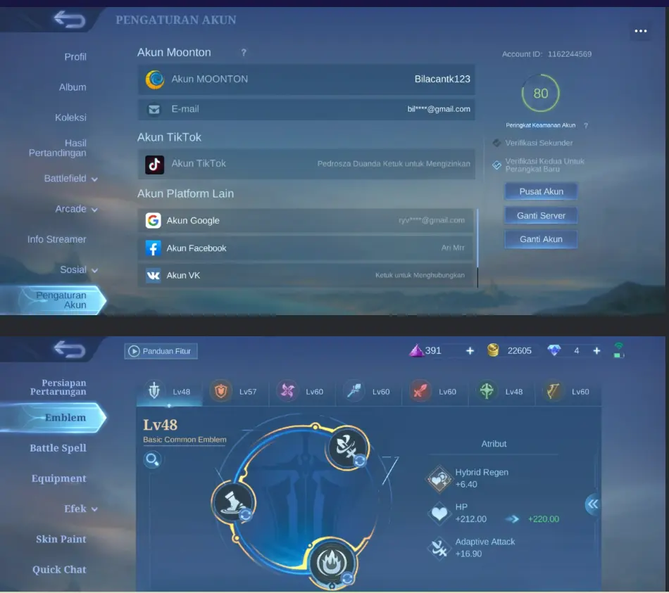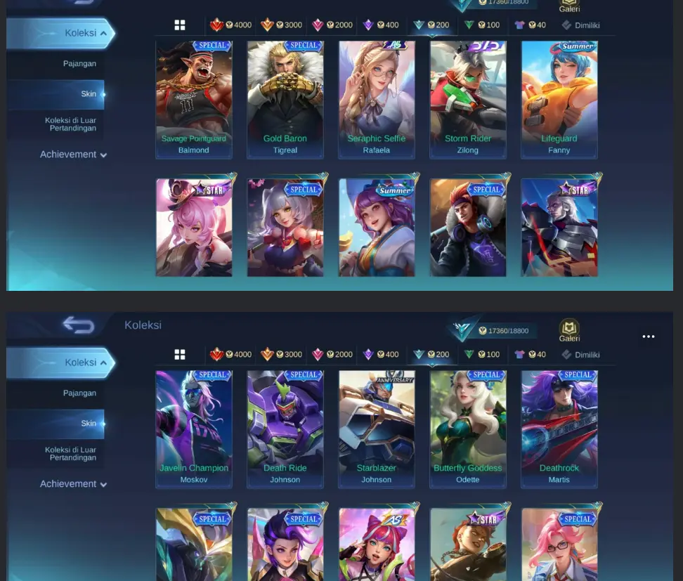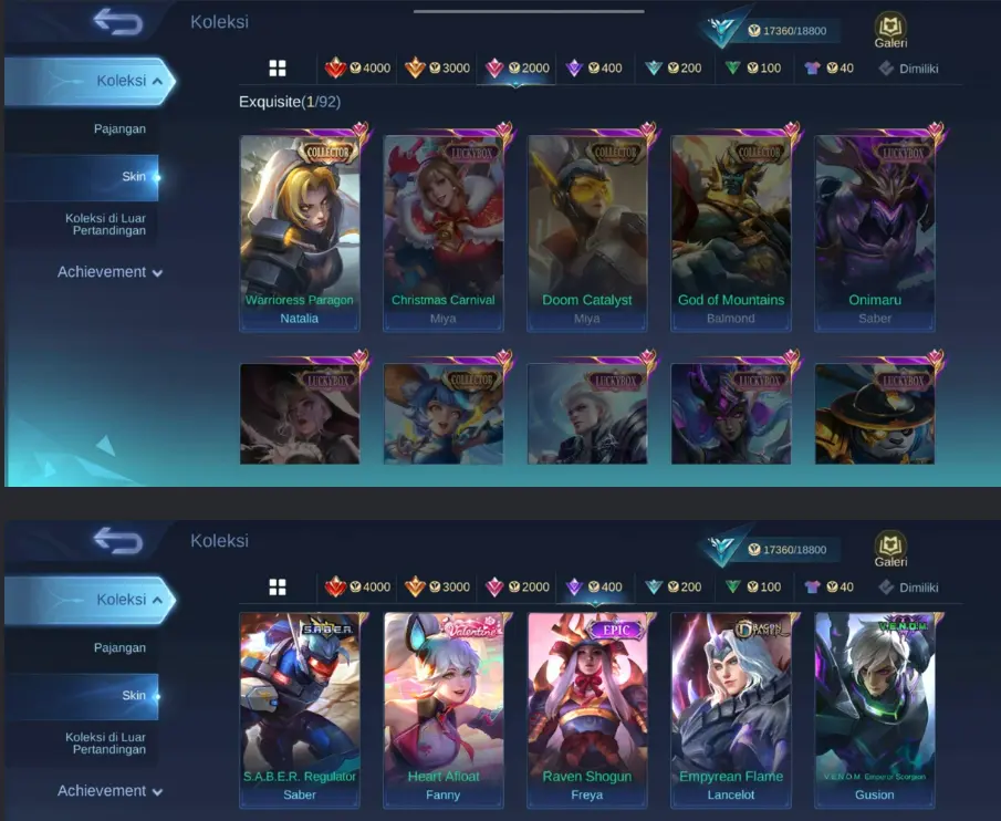Mobile Legend | P6/Lv 50/89 HERO/103 SKIN/4 EMBLEM MAX/NATALIA COLLECTOR VALENTINE/1 SABER/3 VENOM/2 DRAGONTAMER/4 EPIC/SUMMER, KAGU | Full Access | Instant Delivery