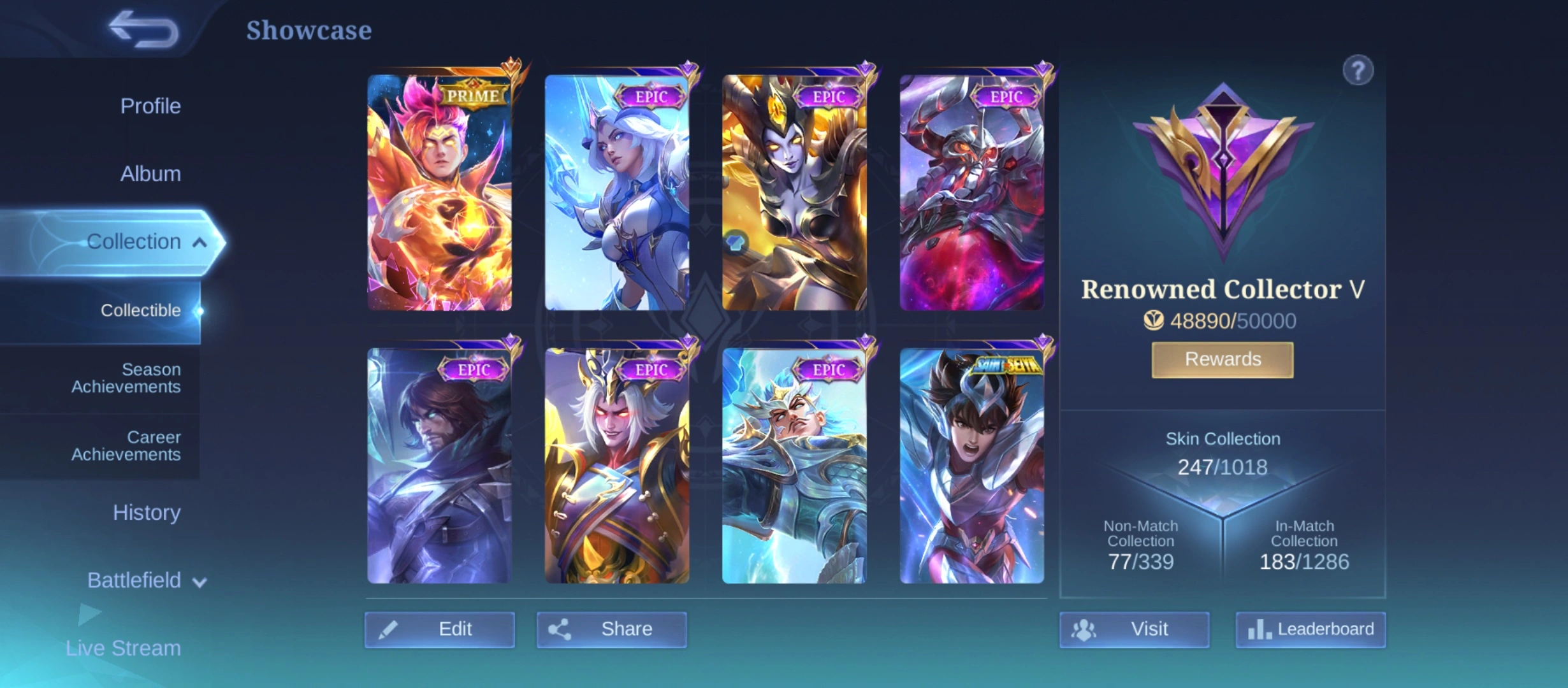 NL834|Lvl 102|RENOWNED CC 5|130 HEROES MAX|247 SKIN|ALL EMBLEM MAX|CLAUDE PRIME|9 EPIC SKIN|BADANG SAINTSEIYA|JULIAN MEOWKIN|LEGEND 5
