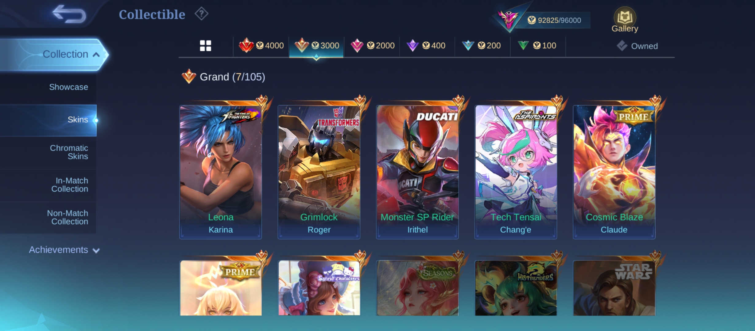 PL568|Lvl 48|EXALTED V|ALL EMBLEM MAX|325 SKIN|IRITHEL DUCATI|ROGER TRANSFORMER|CHANGE ASPIRANTS|2 PRIME|KAGURA CLOUDS|2 COLLECTOR|18 EPIC SKIN|EPIC X40