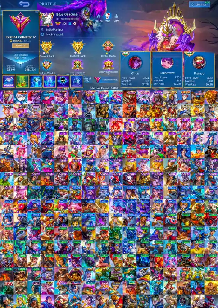{ Rebindable } Exalted Collector 4 🚫 131 Heros 🚫 Mythic Glory 80 ⭐ 🚫 57% Win Rate 🚫 Legend Franco ⸱ Hell Of Fire 🔥 A14