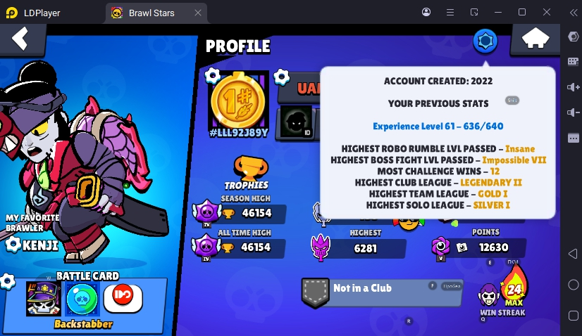 193 SKINS 💯 46.154 TROPHIES 🏆 92 BRAWLERS 🐼 17 HYPERCHARGED 🩸 23 MAX BRAWLERS 💛 CURSED KENJI 🧡 ANTIVIRUS 8-BIT 🧡 ONI KENJI 🧡 HELLBULL 🧡 ROBO SPIKE 💯
