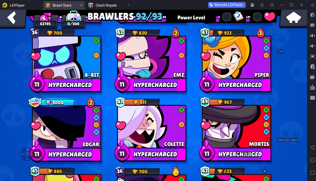 204 SKINS 💯 KING LOU ❤️ 63.195 CUPS 🏆 92 BRAWLERS 🐼 21 HYPERCHARGED 🩸 29 MAX BRAWLERS 💛 MECHA LEON ❤️ CURSED PIRATE BIBI ❤️ DARK FAIRY JANET ❤️ GROUCH MICO ❤️ KABOCHA FANG ❤️ RONIN RUFFS 💯