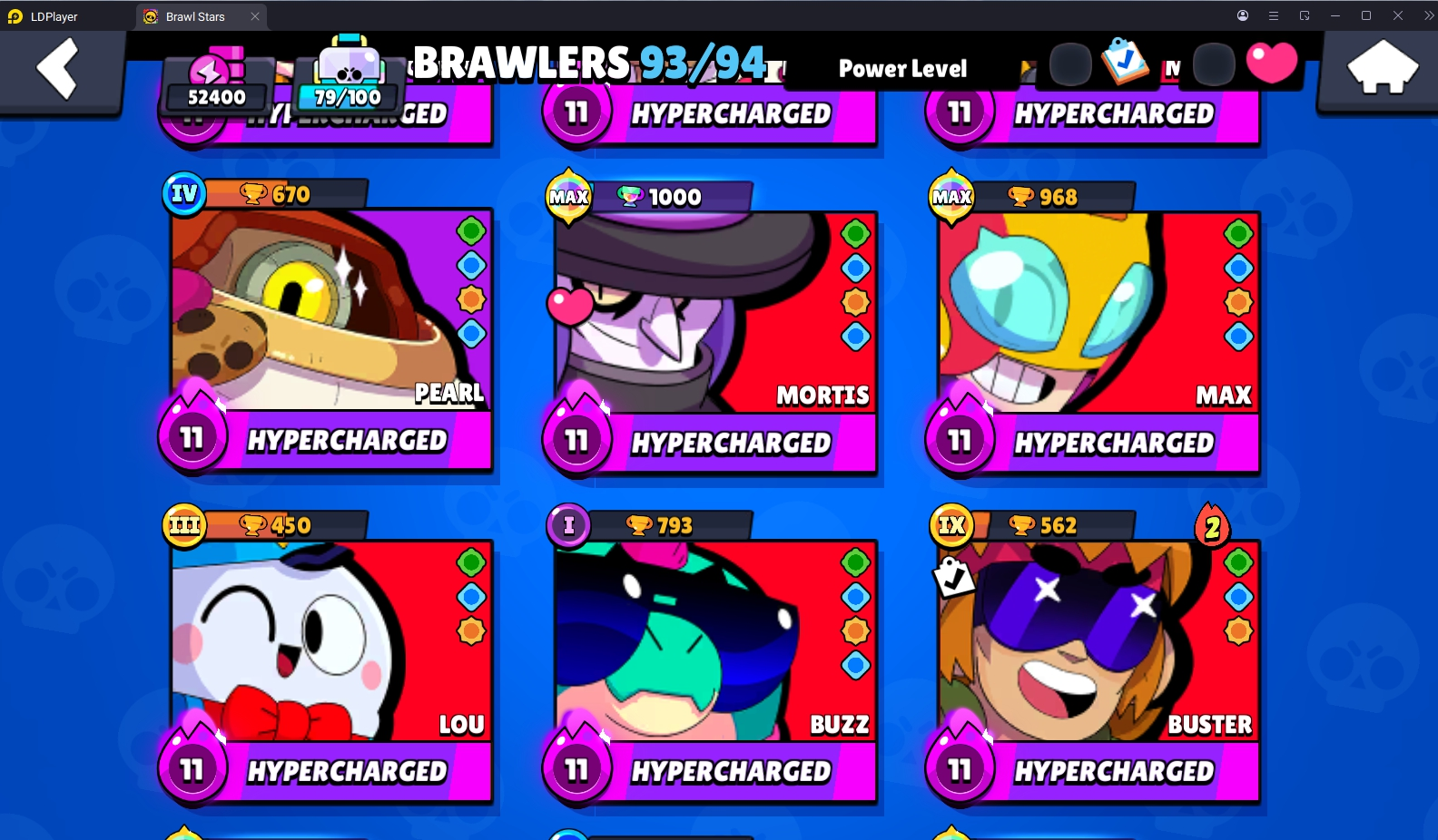 223 SKINS 💯 52.400 TROPHIES 🏆 93 BRAWLERS 🐼 25 HYPERCHARGED 🩸 31 MAX BRAWLERS 💛 MECHA MORTIS 🧡 CORSAIR COLT 🧡 ODIN CORDELIUS 🧡 KABOCHA FANG 🧡 YETI SAM 💯