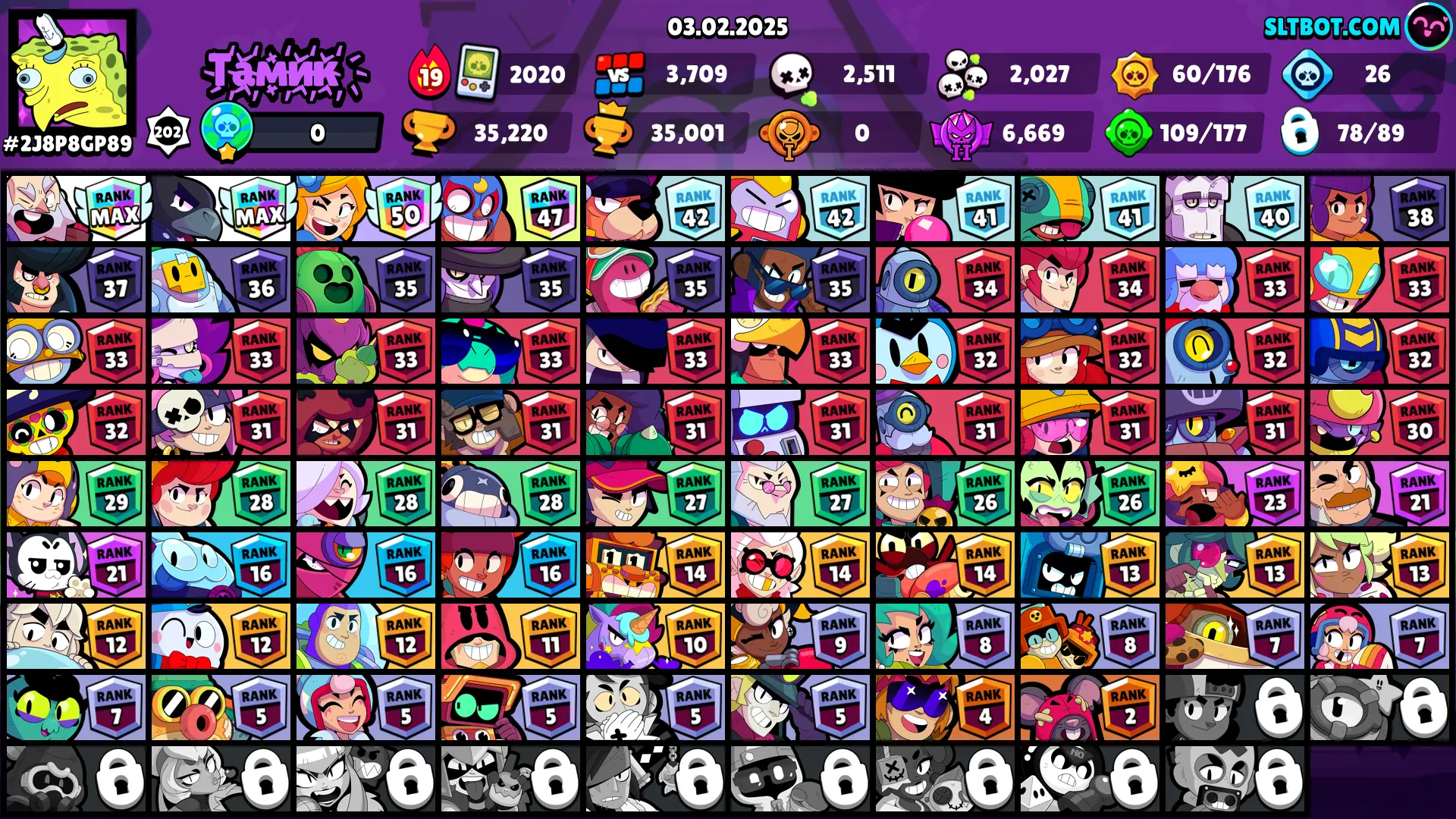 35.000 TROPHY | RONIN RUFS CORSAIR COLT | 2 MAX RANK | 77 BRAWLERS | 84 SKINS | 10 MAX | 4 HYPERCHARGE| INSTANT DELIVERY