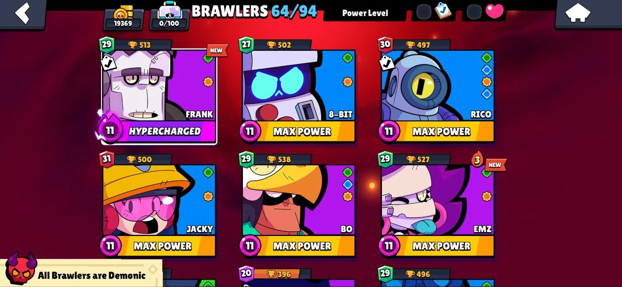 ⭐ 64 BRAWLERS 🎯 6 MAX BRAWLERS 🐼 1 HYPERCHARGED 🎯 19369 TROPHIES 🧥 51 SKINS 🔵 MECHA PALADIN SURGE 🔵 SURGE LIGHTYEAR 🔐 FULL ACCESS