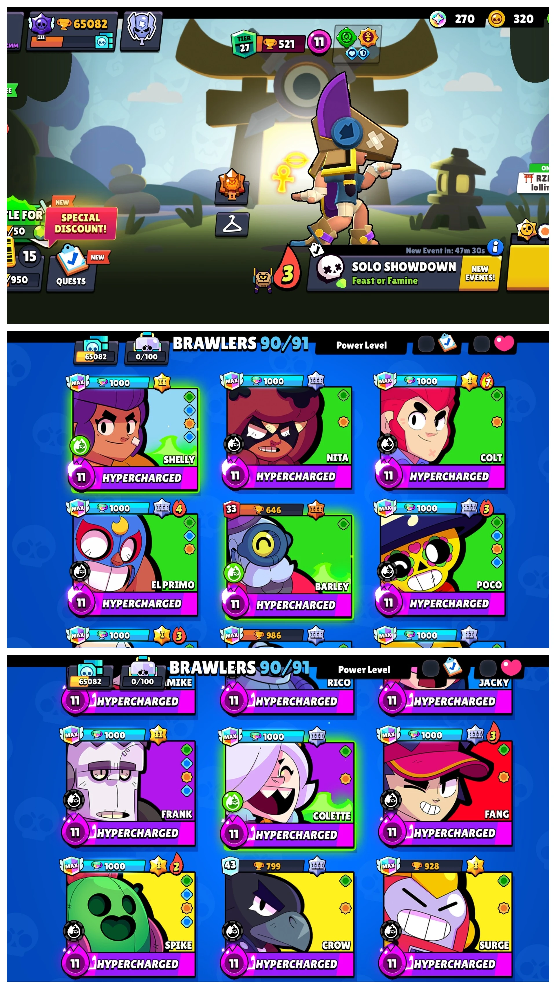 65k TROPHIES | 15 Hyper 3 Max| 90|91 BRAWLERS UNLOCKED 153 COOL SKINS | INSTANT DELIVERY