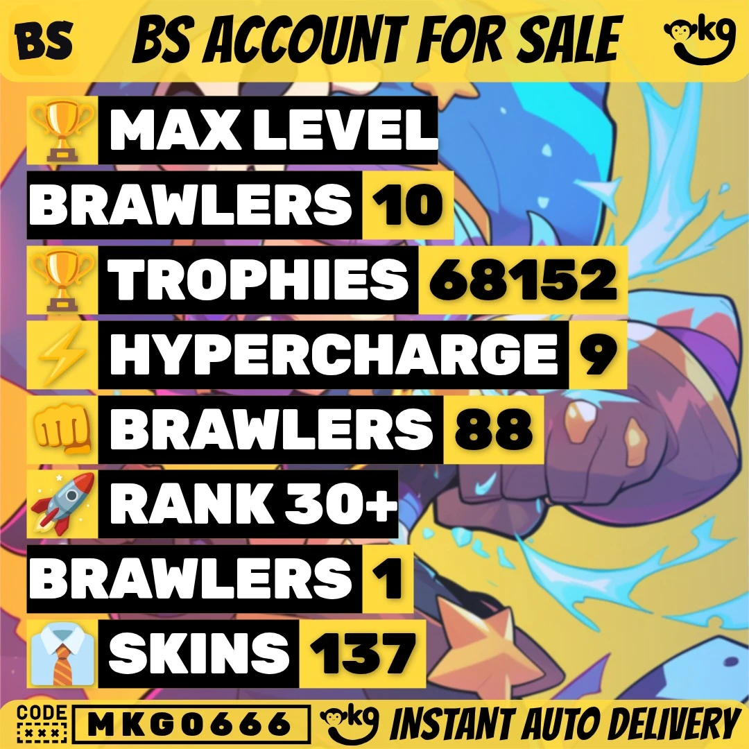 137 SKINS ๐ฏ 68.152 TROPHIES ๐ 88 BRAWLERS ๐ผ 9 HYPERCHARGED ๐ฉธ 10 MAX BRAWLERS ๐ ZEUS BROCK ๐งก CAT BURGLAR JESSIE !MKG0666
