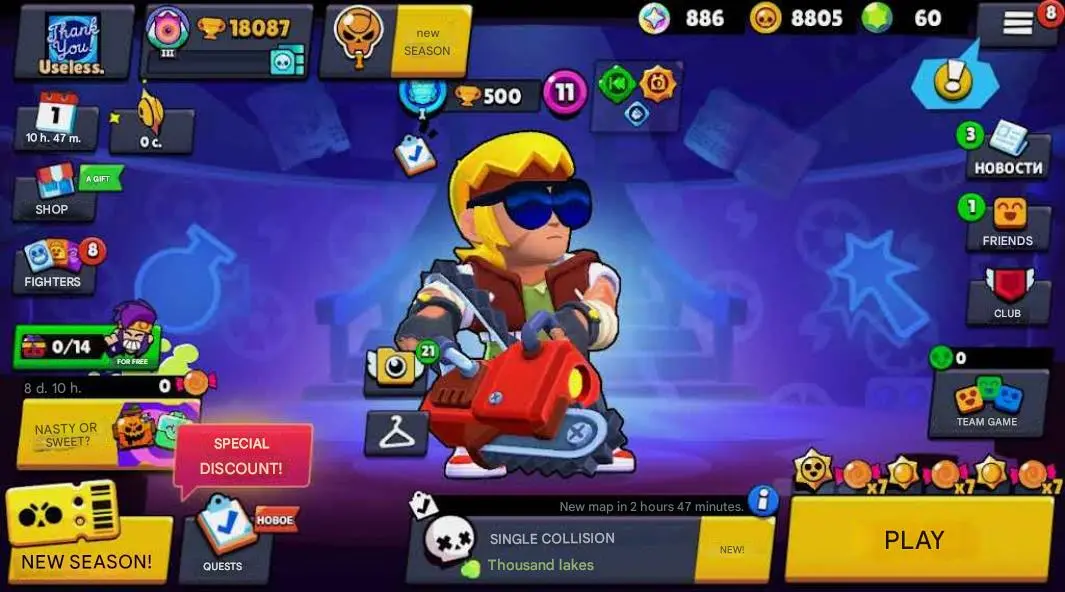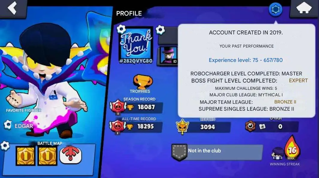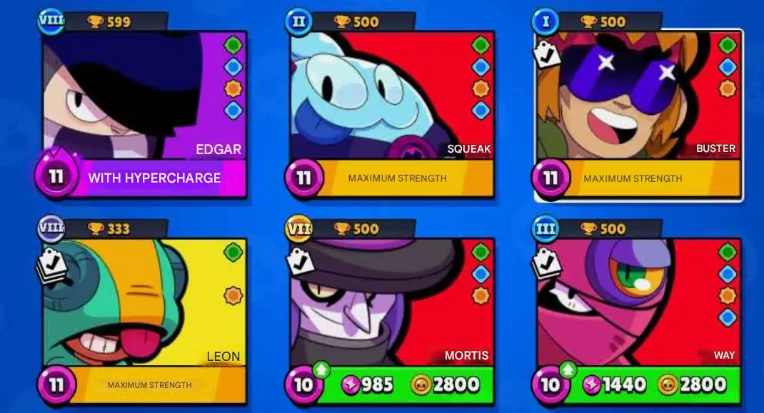 BS1473 BRAWL STARS 8883 Trophies 42/95, 36 Skins, Monarch, Rico ,Leon ,Dynamic, with Hypercharge,Feng with Hypercharge,Rico with Hypercharge