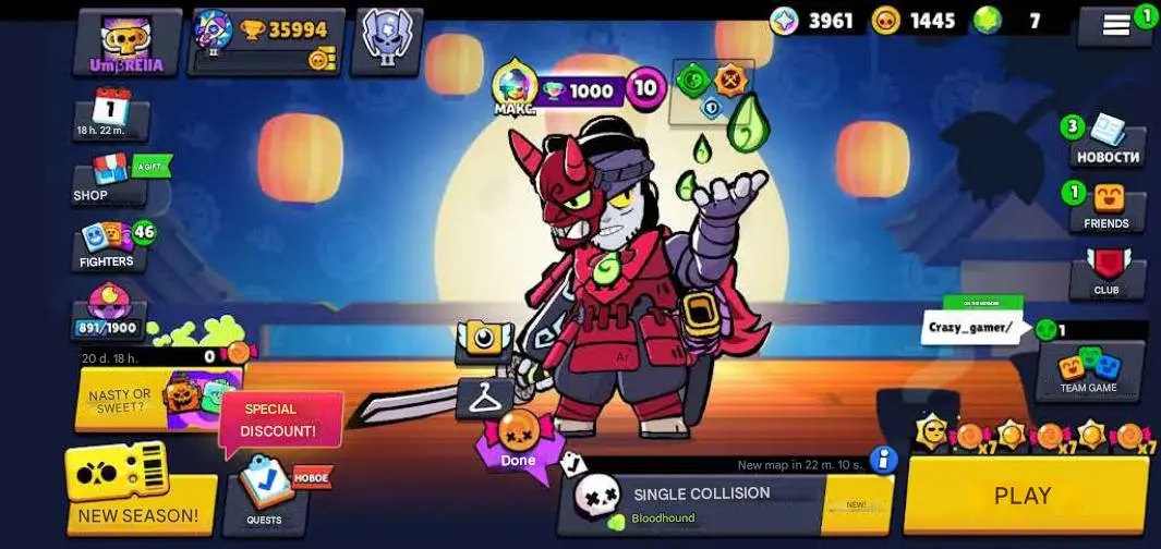 BS1487 35,310 trophies, 70 fighters, 151 skins, 17 power level 11 with hypercharge, 45 rare skins, 49 super rare skins, 51 epic skins, 2 mythic skins, 4 legendary skins