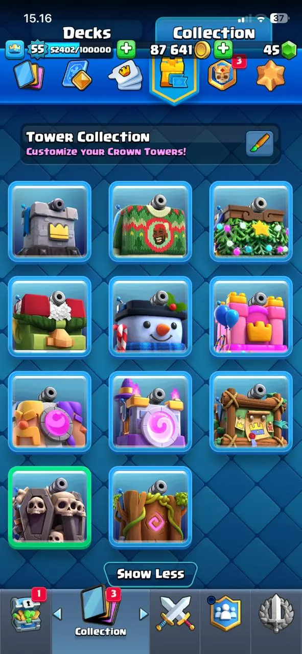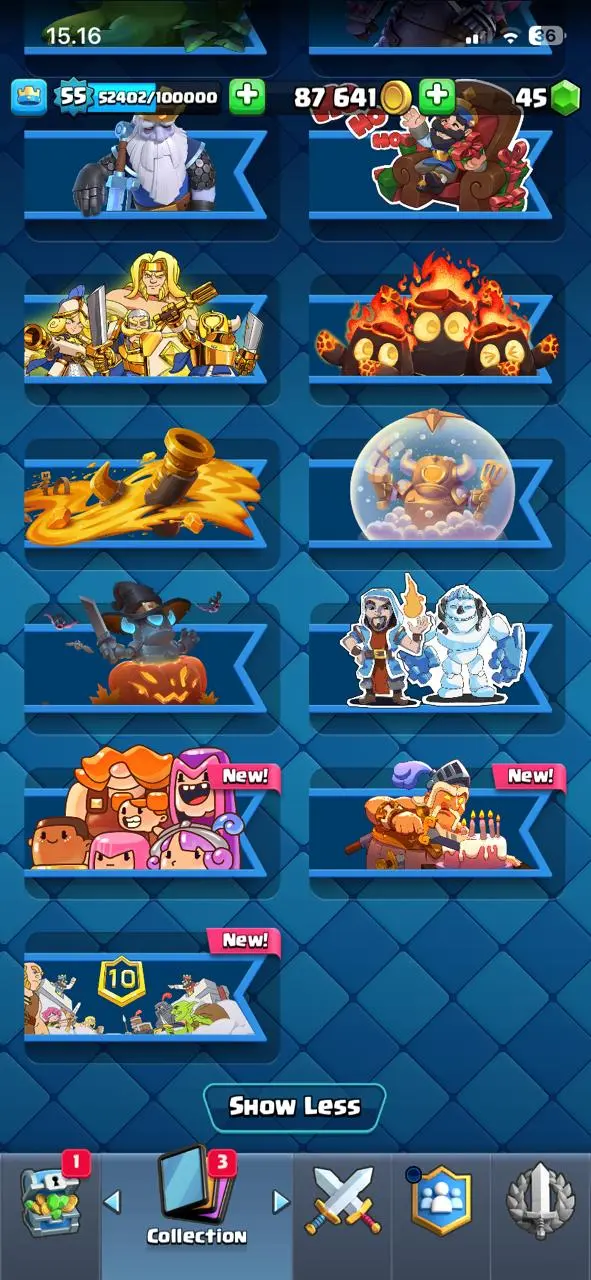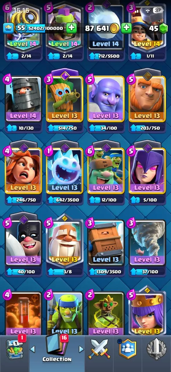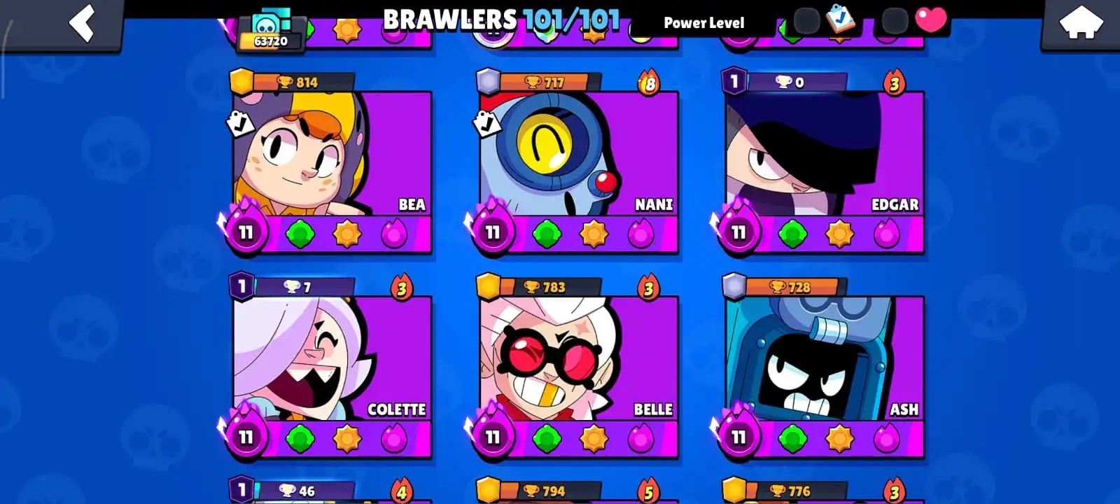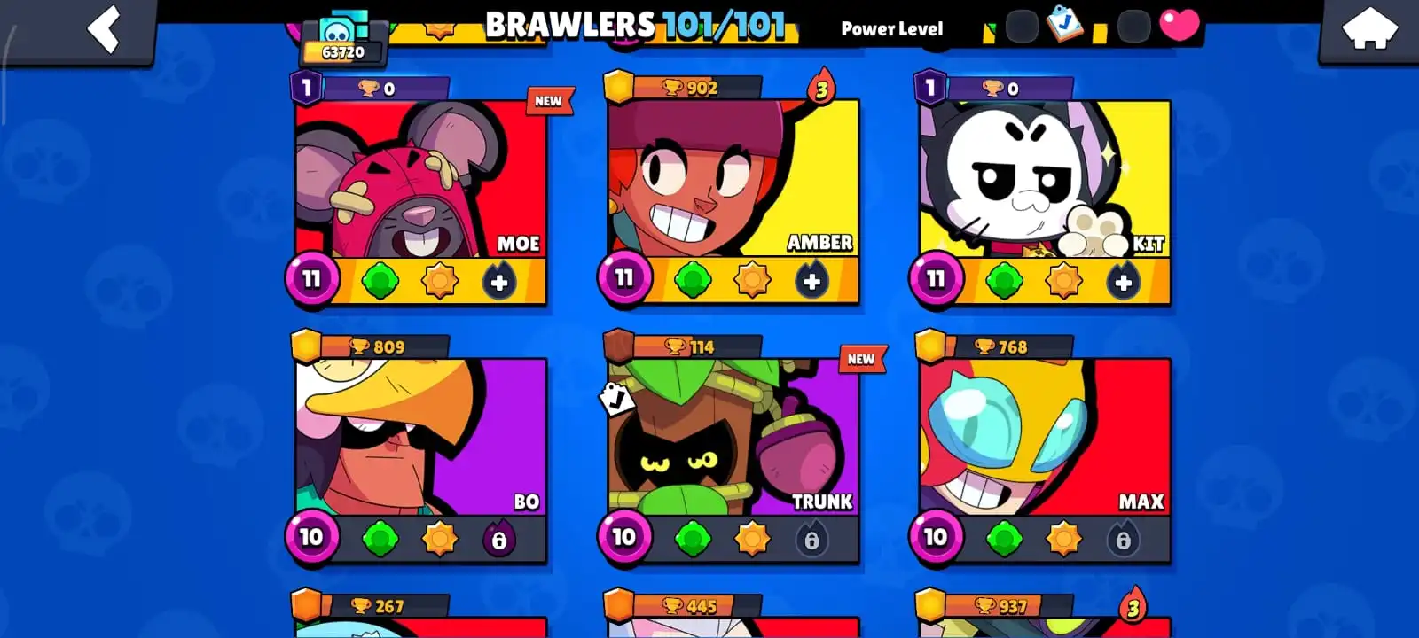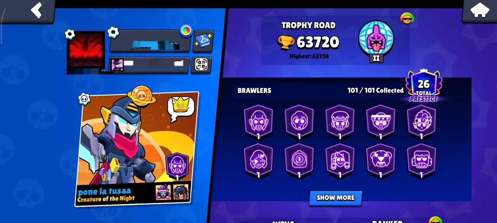 combo cr lv 55🔥51 max brawl🔥43 hypercharged🔥321 skins🔥trophy 63720🔥full access account🔥