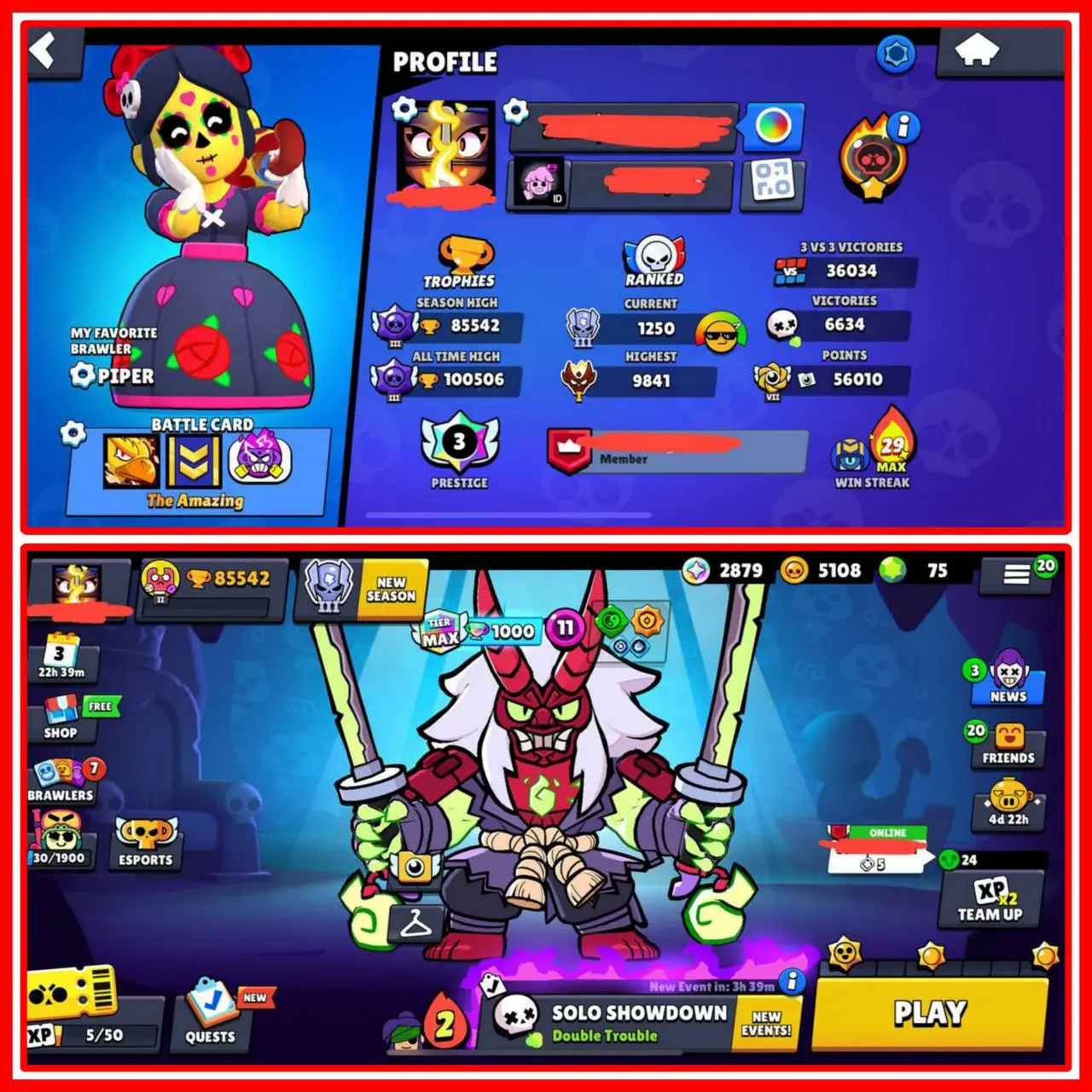 MOST RARE & PREMIUM ✨ 100000 TROPHIES [HIGHEST] 🔥 54 TITLES {44 MASTERIES} ⭐ ALL BRAWL ERS MAX POWER {92 MAX} ⚡️ 69 HYPERCHARGED ⭐️ 400+ SKINS 💫 METEORIC FAME 💥 3 PRESTIGE ⚡️ 56k POINTS (NEW UPDATE) 👾 36k TRIO WINS