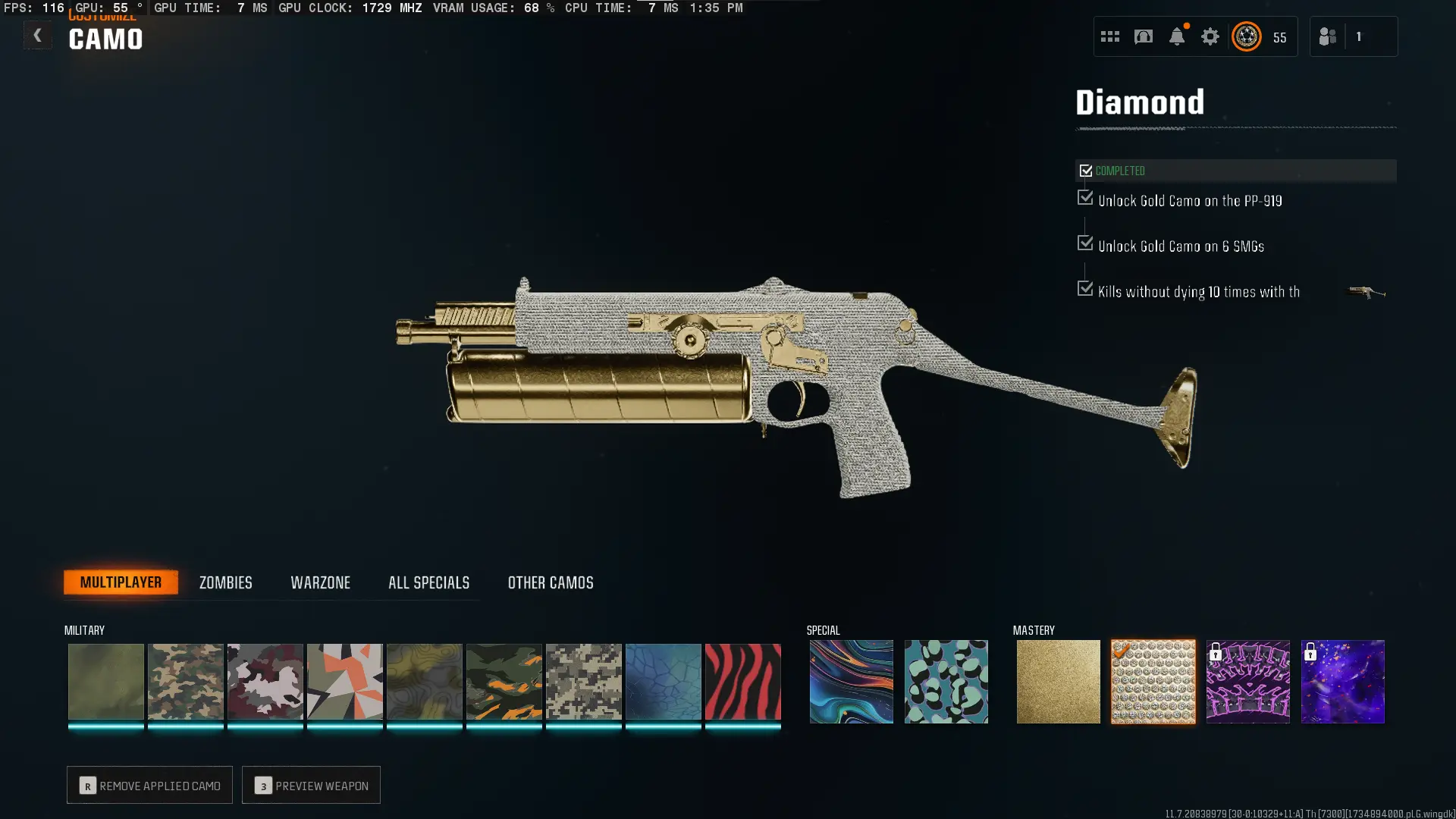 💎 ⦿ 14 Diamond Camos ⦿ 50 Win ⦿ Ranked Ready ⦿ Game Pass Activated ⦿ BO6 / Warzone ⦿ Level 55 ⦿ 14 Gold Camos ⦿ 180 Total Camos ⦿ Ready To Enter Prestige ⦿ 16 Operators ⦿ Linkable To Any Platform 💎