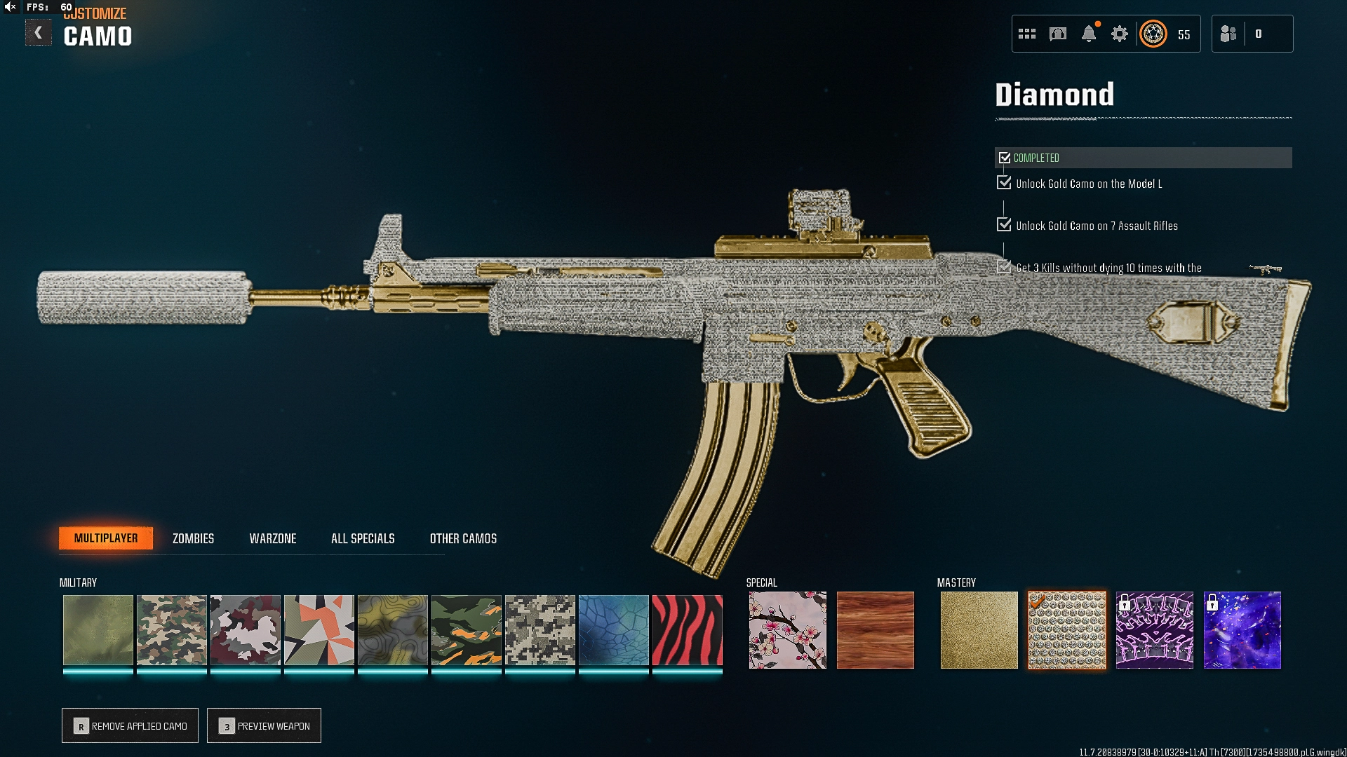 🕹️ 20 Diamond Camos 🎮 260 Camos 🌟 Level 55 + 50 Wins 🐉 17 Operators 🔥 Ranked Ready 💎 Prestige-Ready 🔒 Full Access 🔗 Linkable: Steam, Battle.net, PSN, Xbox ⚡ BO6 #S5X1R8
