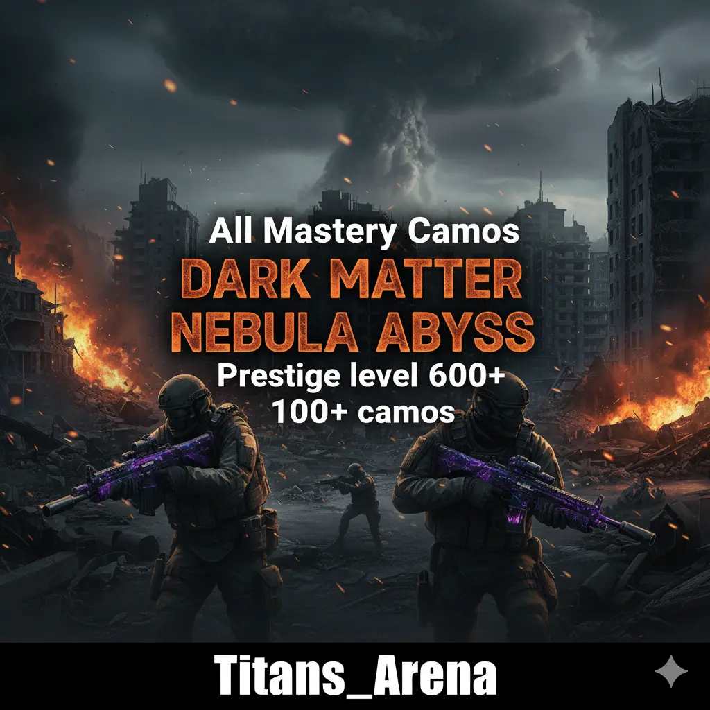🍁All Mastery Camos♨️ DARK MATTER ♨️ NEBULA ♨️ABYSS🍁 Prestige level 600+🍁 1000+ camos ☀️PC/XBOX/PS linkable 🍁Most stacked account⚡️Full access⚡️