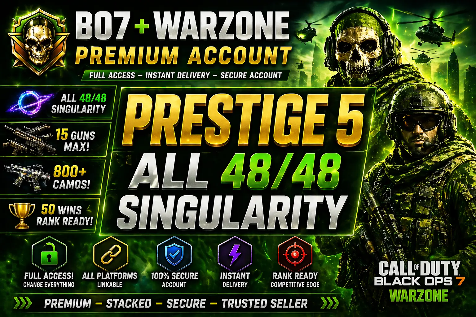🔥 BLACK OPS 7🔥PRESTIGE 5 🔥 ALL GUNS SINGULARITY + 6 Gins Max🔥FULL ACCESS 🔥ALL PLATFORMS LINKABLE