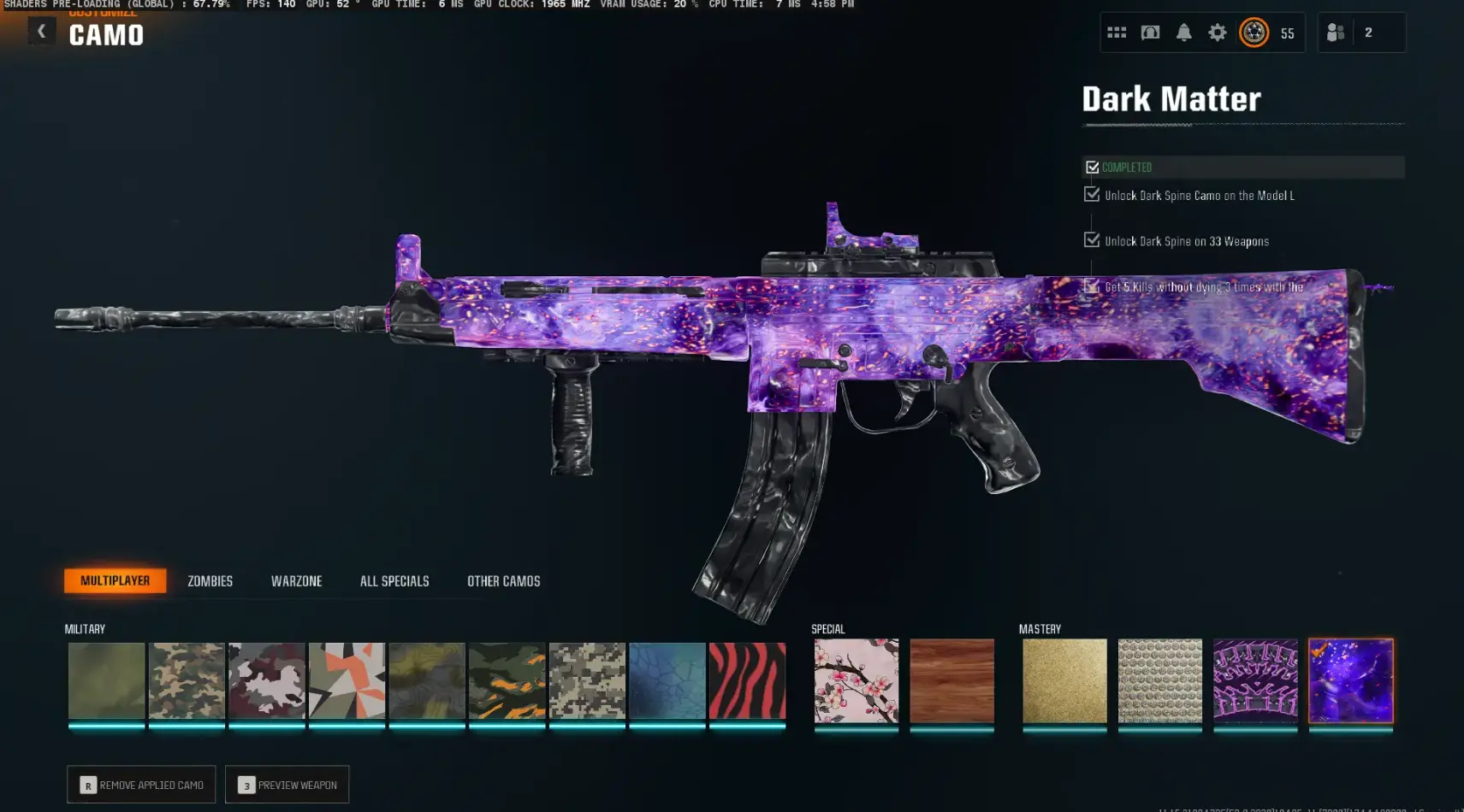 Dark Matter π₯ 500+ Camos π₯ Level 55 + 50 Wins π² Full Access πWarzone 4 π Ban Armor π‘οΈ 24/7 Priority π² Bo6 Ranked Ready