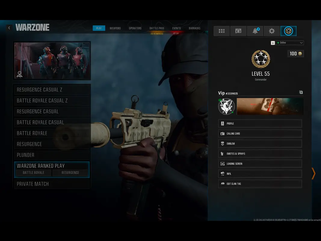 ✨⭕ Warzone 4 | ⚡ Level 55 | 🔥 3 Maxed Guns [New Meta Guns (Dresden 9mm-Merrick 556-] | 🎮 Ready For Rank | 🟣 Hand Leveled | 🟥 Name Changeable | 🎯 Instant | 🌐 Linkable to All Platforms | 🔓 Full Access