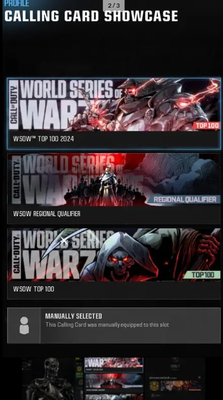 WARZONE🎃WSOW REGIONAL QUALIFIER + MW 2 AND MW3 TOP 100 + MW3 REGIONAL QUALIFIER CARDS🎃T 250 EMBLEM🎃PRESTIGE MASTER ICON🎃TERMINATOR OPERATOR IN SHOWCASE ONLY