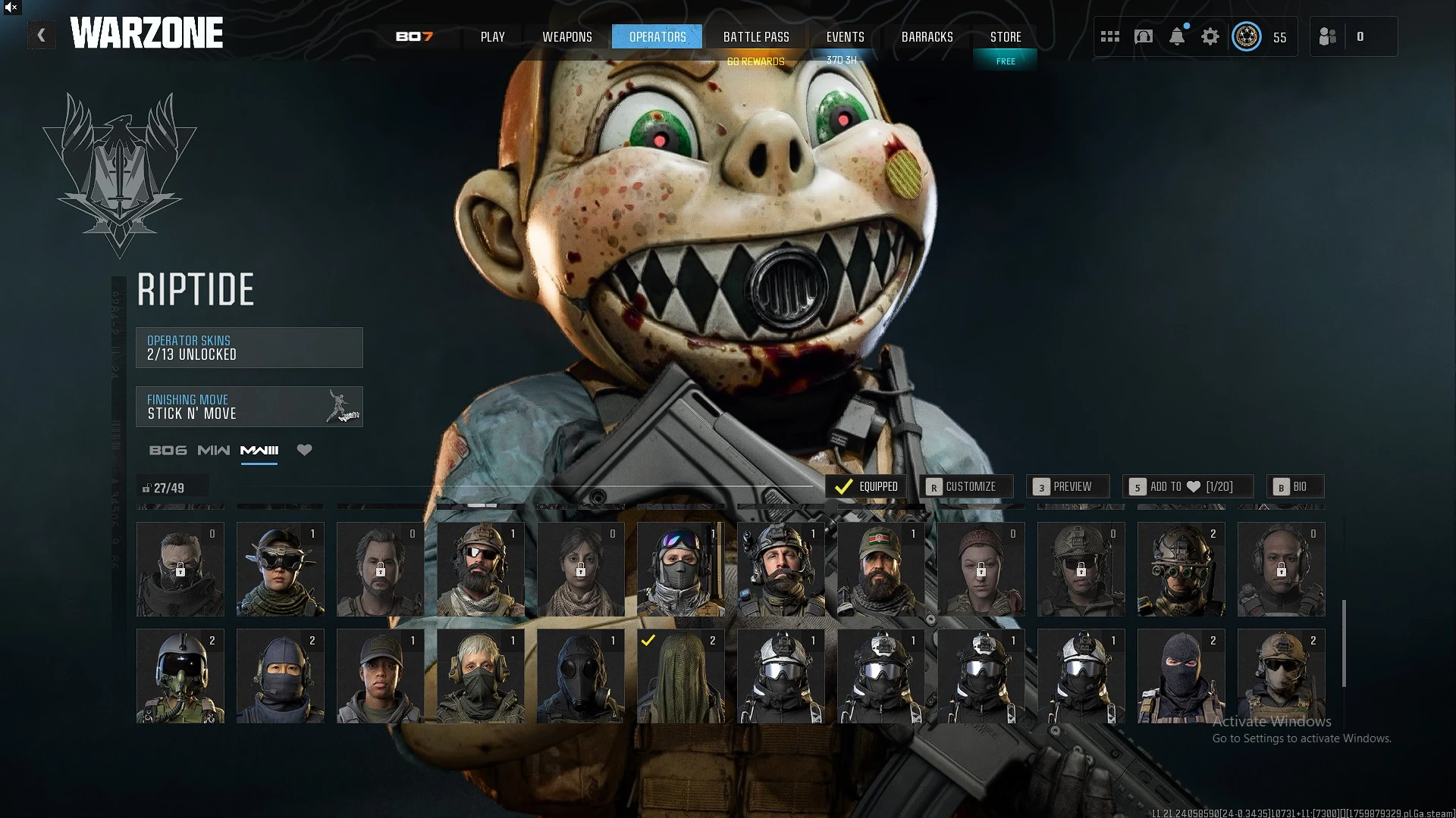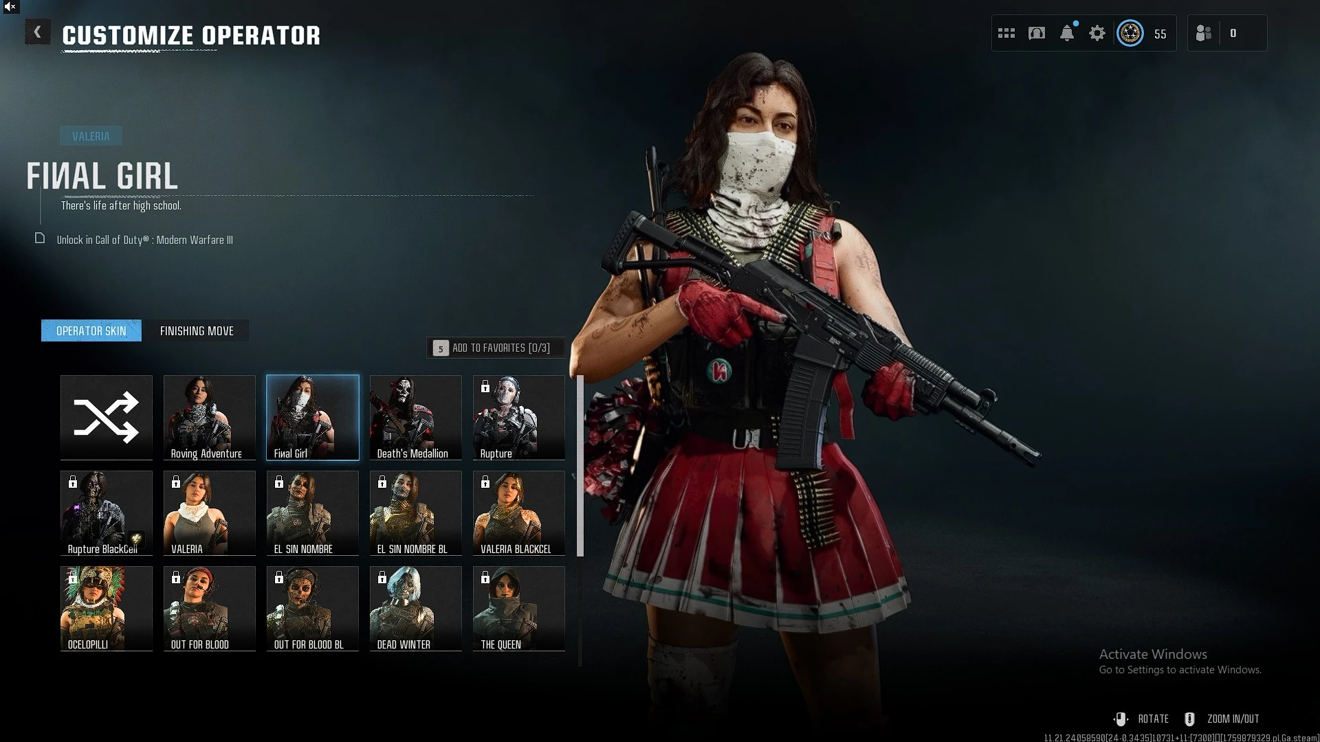 ⭐【WZ4/BO6】🔥【Level 55】Michael Myers-Rhea Ripley-Mace-Riding Hood | x3 Battlepass Skins | Kar98 Max | XP Tokens