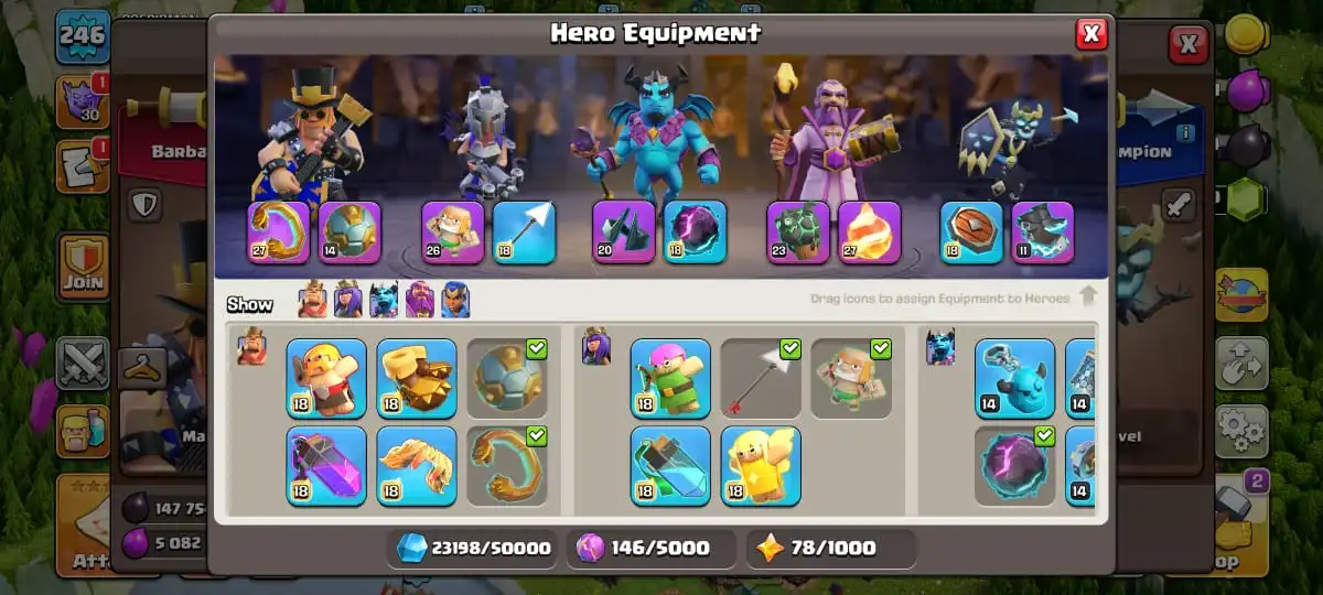 2 EPIC EQUIPMENT MAX🔥TH 17 MAXED DEFENCE🔥HEROES MAX 100-100-77-75-50🔥JUNGLE & MAGIC & PIXEL & CLASH A RAMA SCENERY🔥MAGIC ITEMS READY🔥FULL ACCESS ACCOUNT🔥