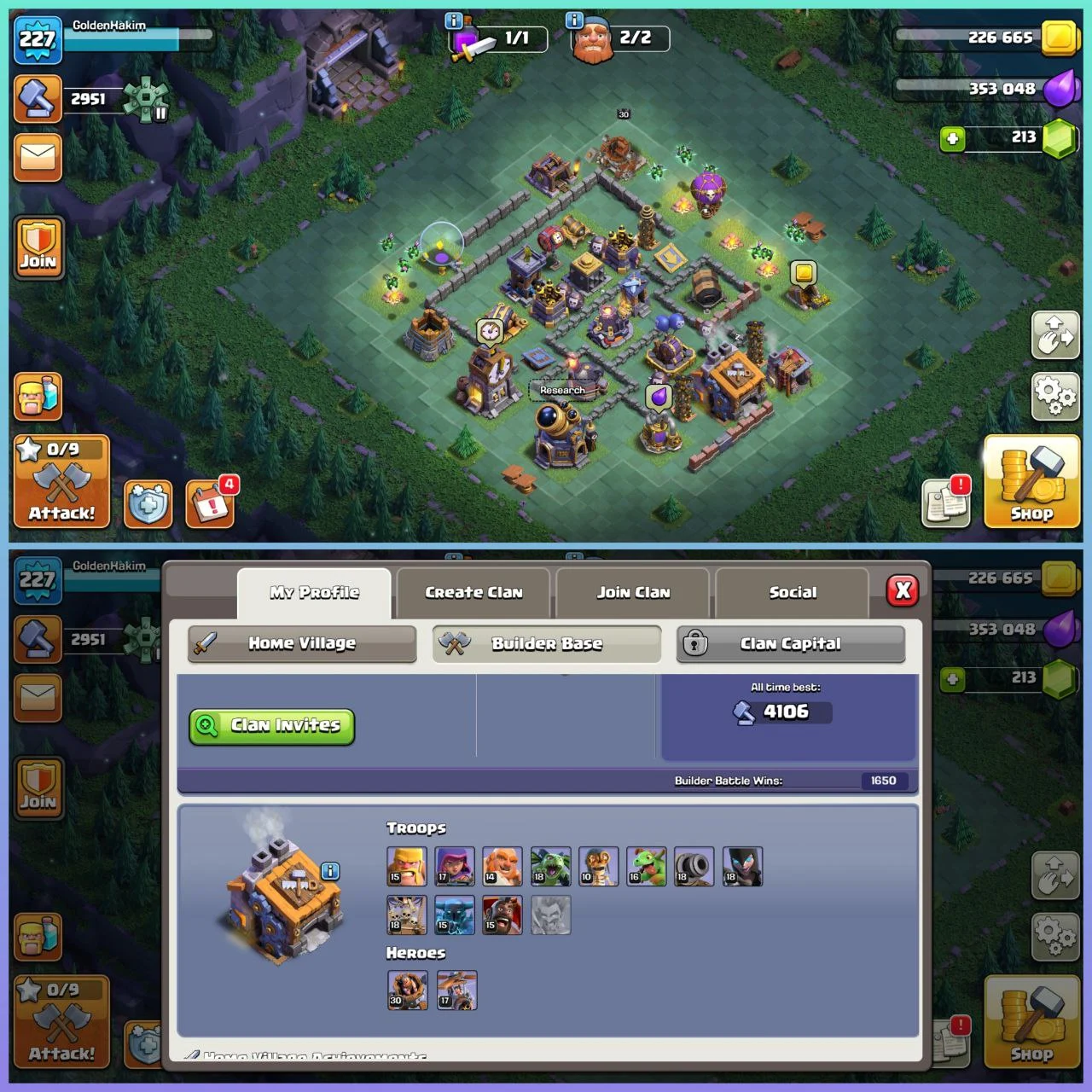 209|| LVL-227! TH-16! 6th BUILDER! HEROES-60|90|62|60|40| GREAT TROOPS! STRONG DEFENCES! FULL ACCESS!