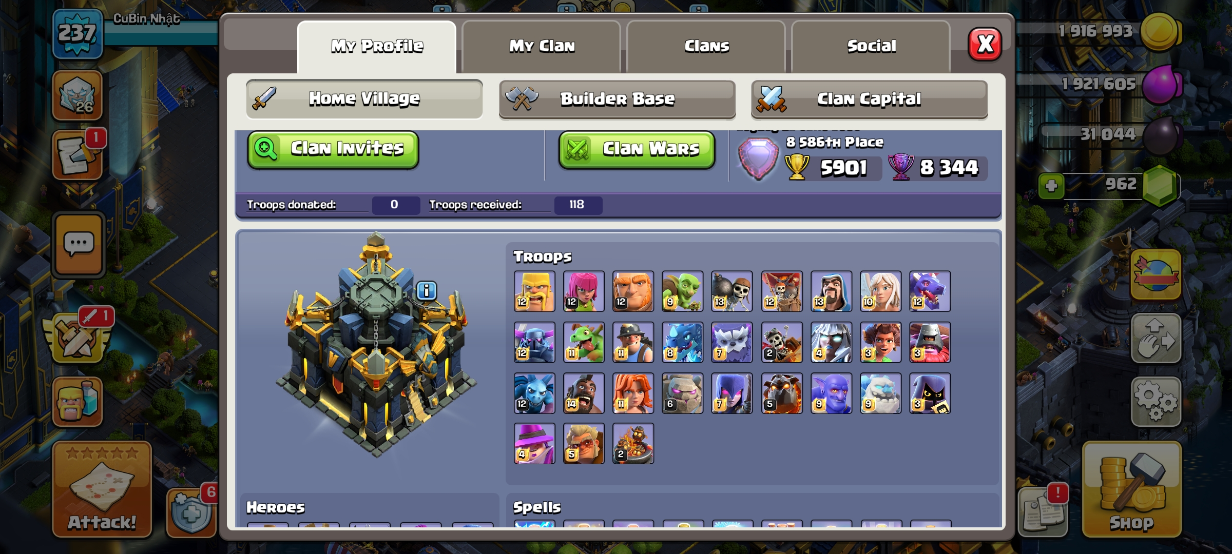 🔥 8 EPIC ABILITIES MAXED 🔥 TH 17 ALMOST MAXED OUT 🌟 777 CWL MEDAL 🎖️ 8K L.TOPHY 💫 2X RARE SCENERY ⭐