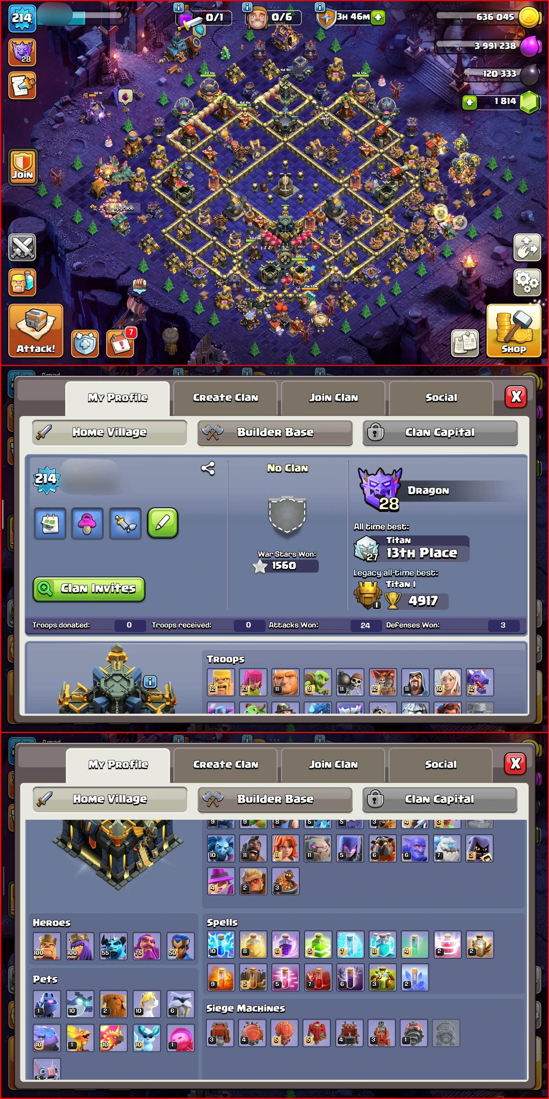 90% MAX TH17 w/ MAX CORE DEFENSES & WALLS + COSMIC SCENERY | 4 Max Heroes & Hefty Abilities | 11/13 Epics & Burly BH10 | 1K NC | RB427