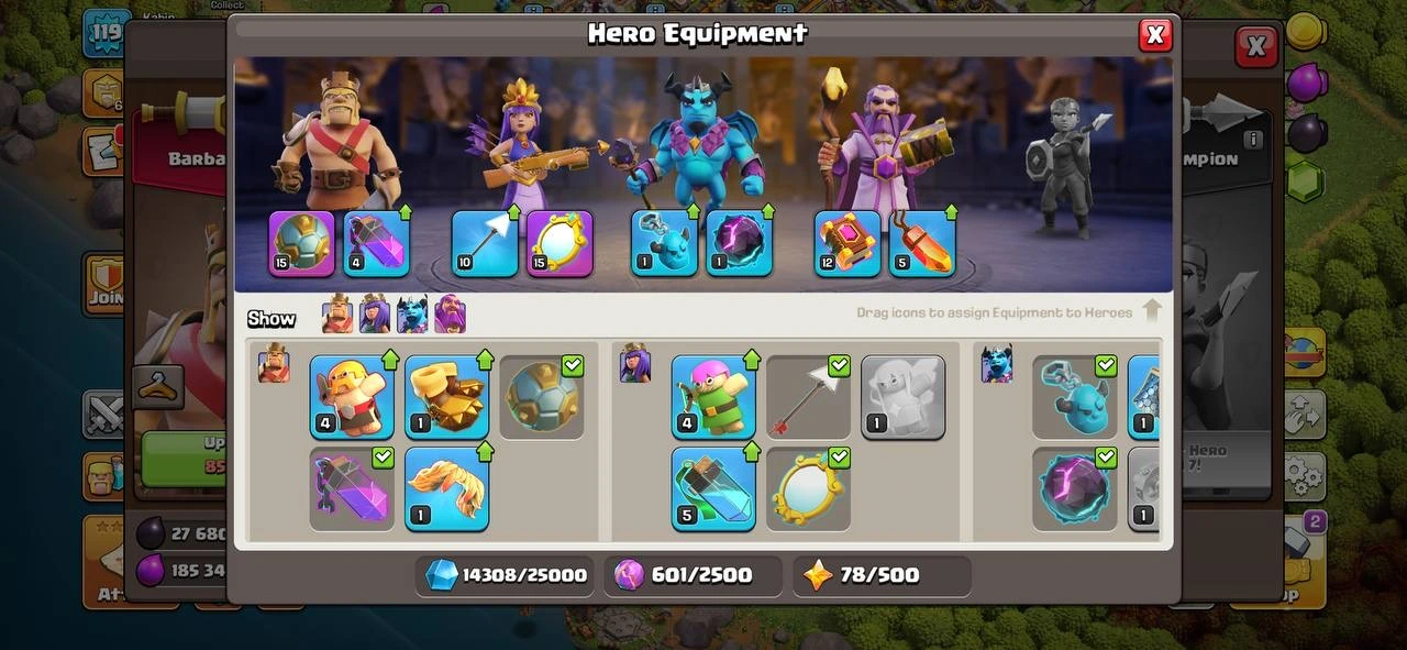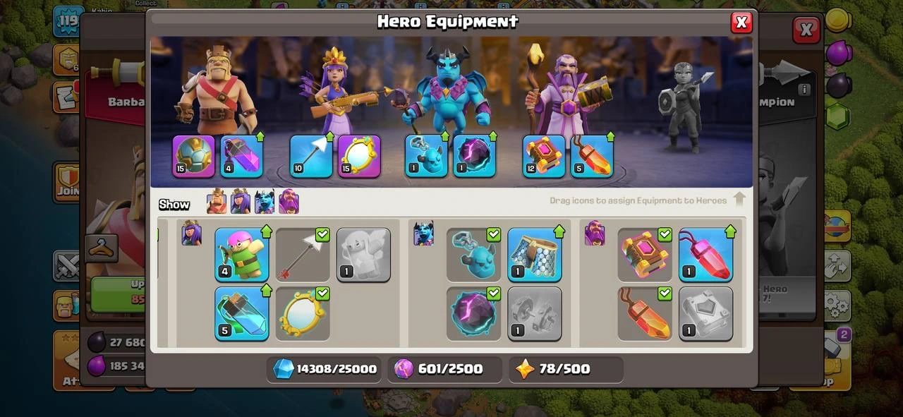 All Hero & Defence Max ๐TH 11 {Free Name Chnage } ๐2 Epics EQUIPMENT ๐ 49-50-24-20 HEROES ๐ 119 XP LVL ๐ OP MAGIC ITEMS ๐ FREE RENAME ๐OP HEROES SKIN ๐ 275 WAR STAR ๐ SUPER FAST INSTANT DELIVERY