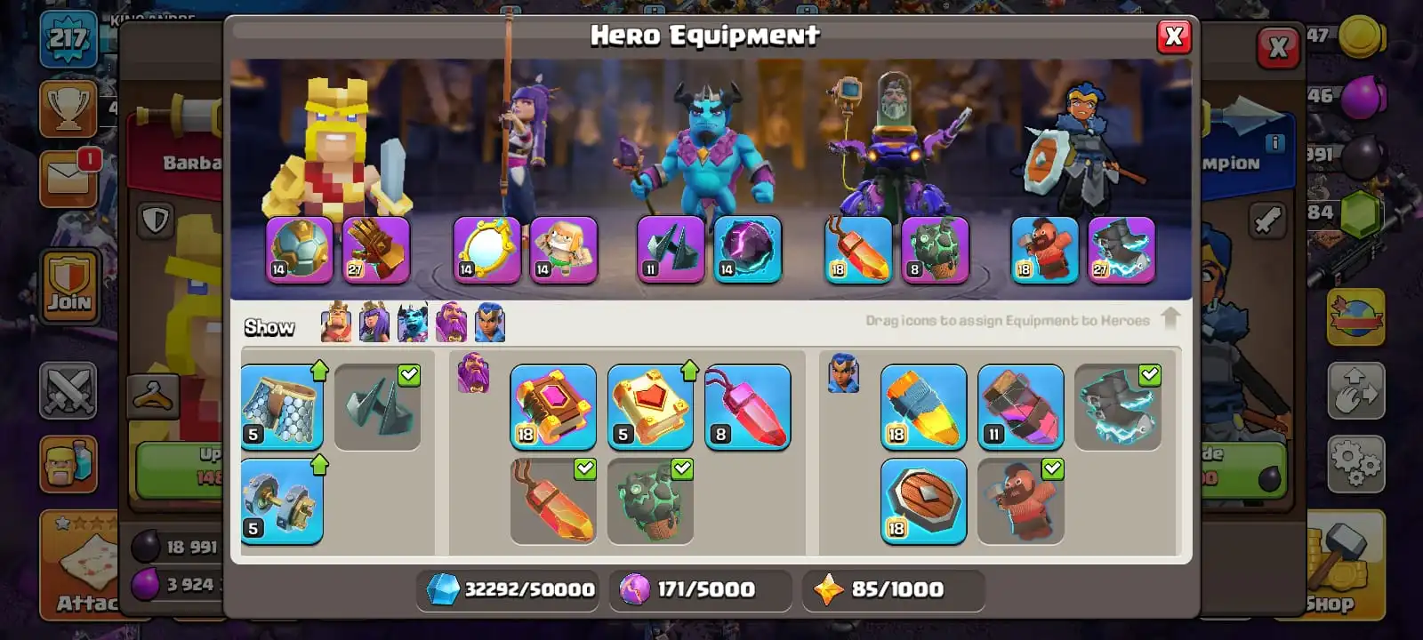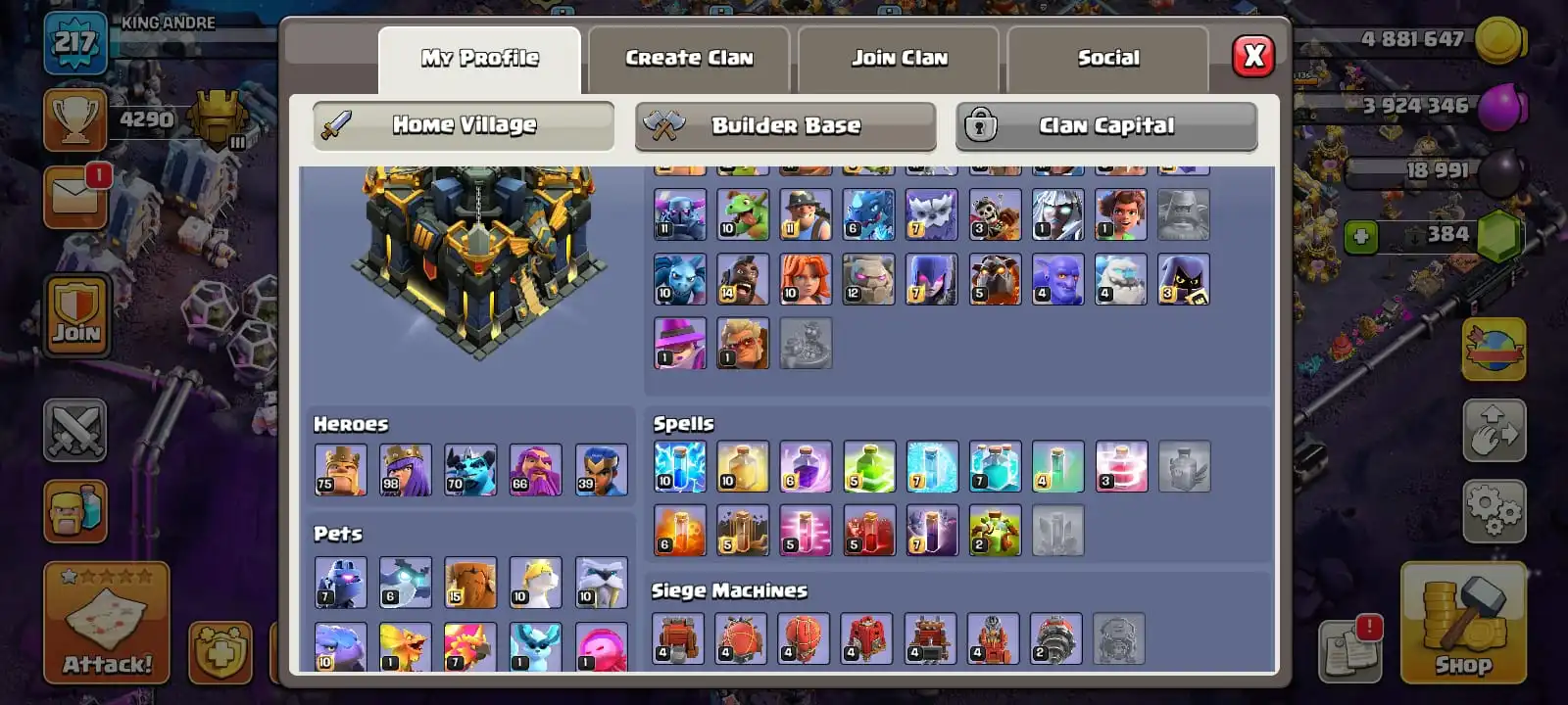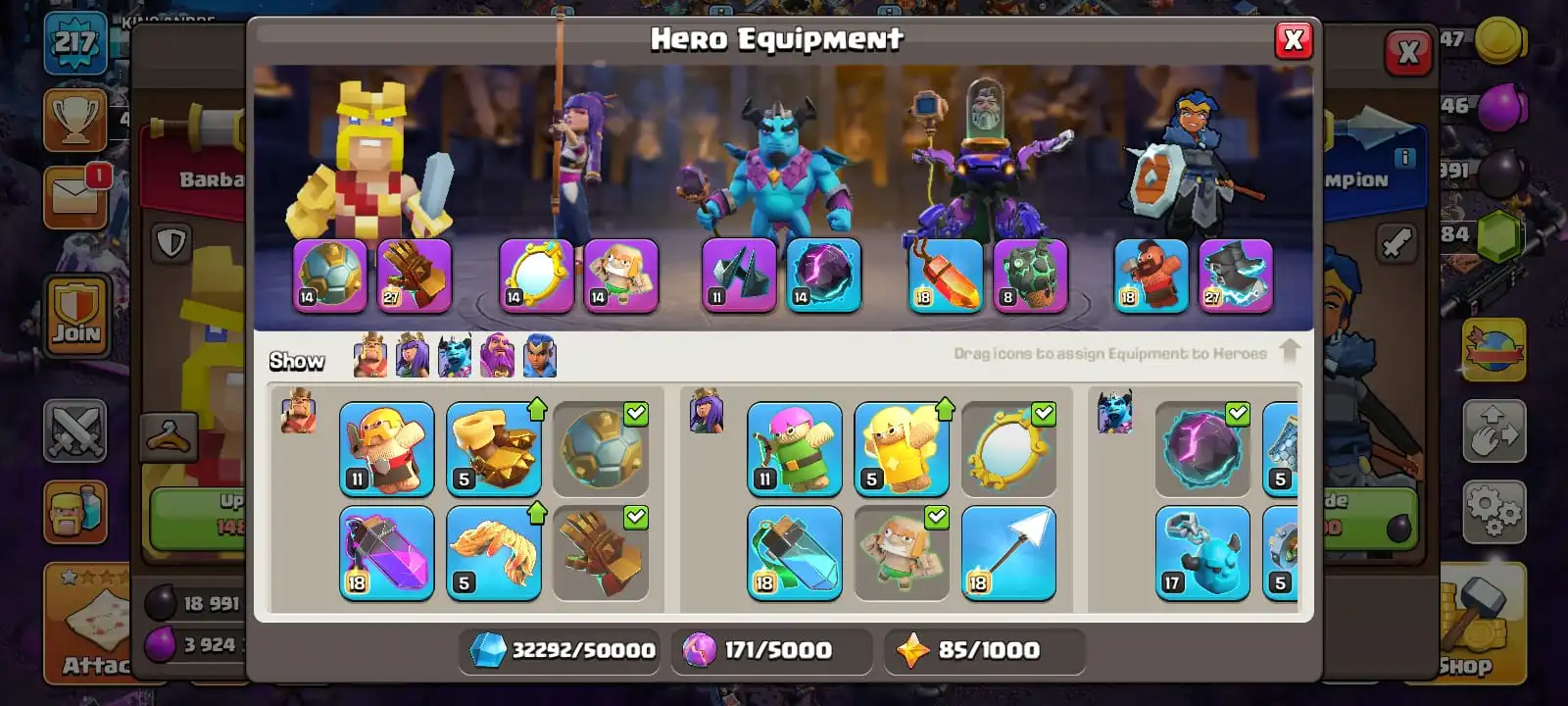 Best deal☠️max giant gauntlet and electro boots🔥TH 17 almost max🔥high heroes level 75/98/70/66/39☠️7 epic equipment⚒️6 builder’s✅2 scenery and 11 hero skin