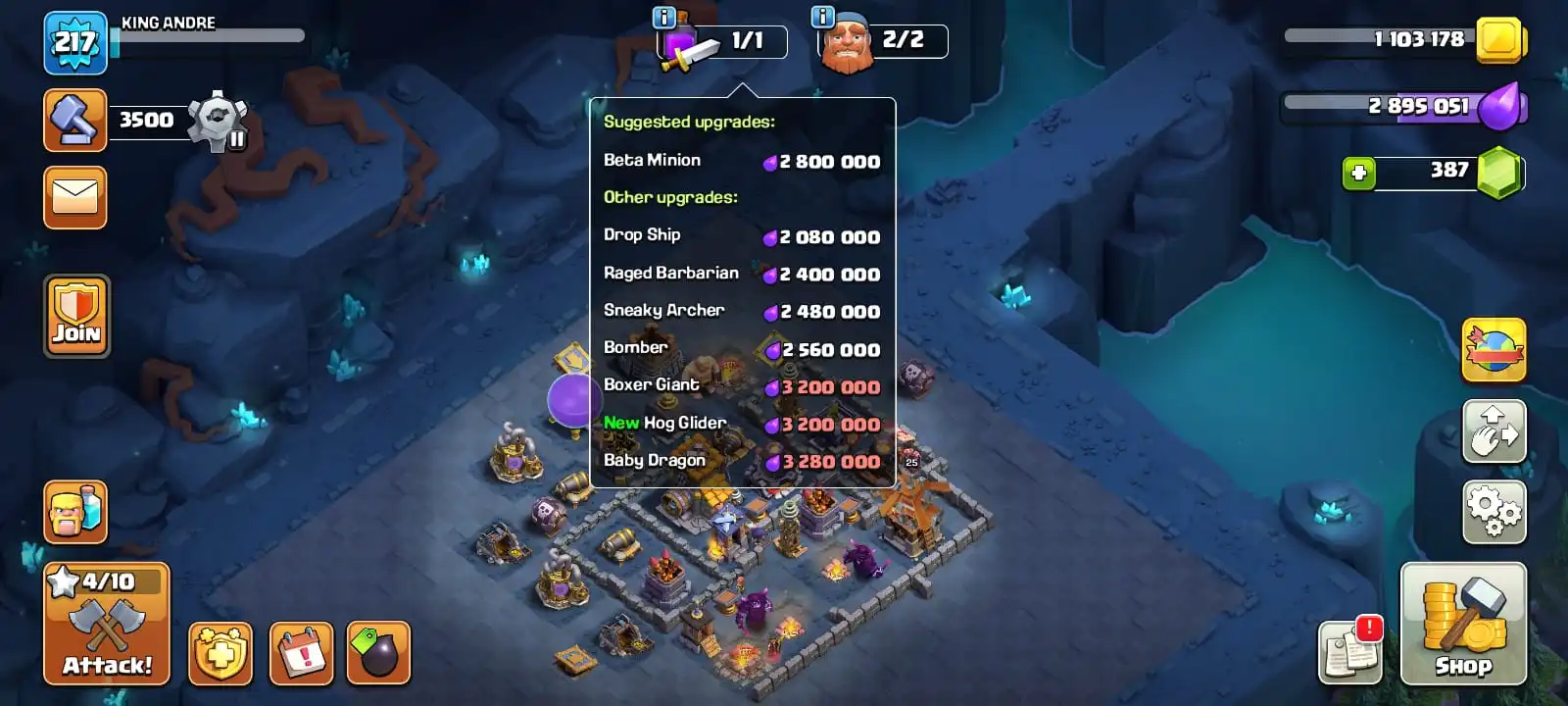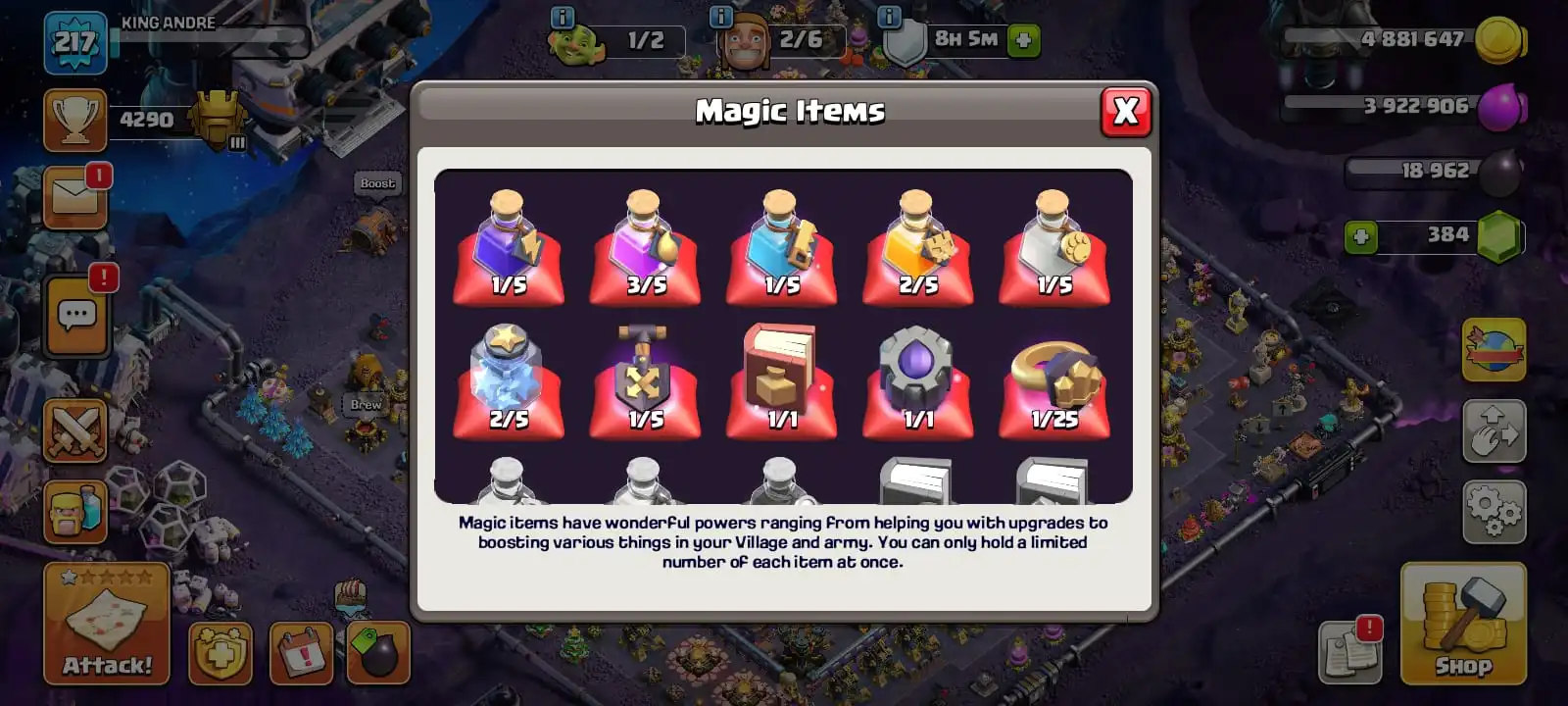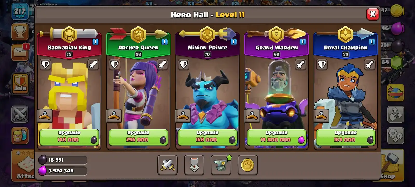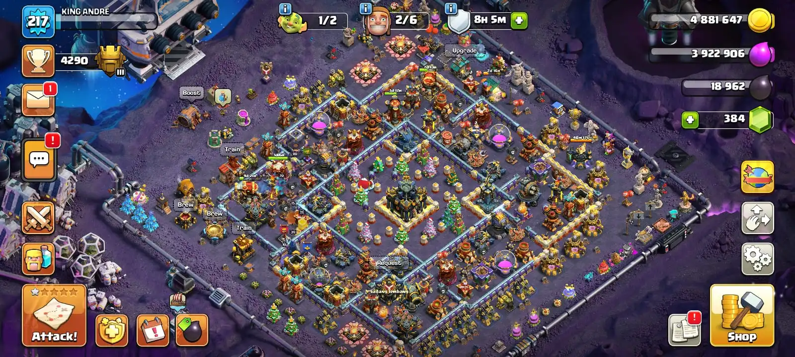Best deal☠️max giant gauntlet and electro boots🔥TH 17 almost max🔥high heroes level 75/98/70/66/39☠️7 epic equipment⚒️6 builder’s✅2 scenery and 11 hero skin