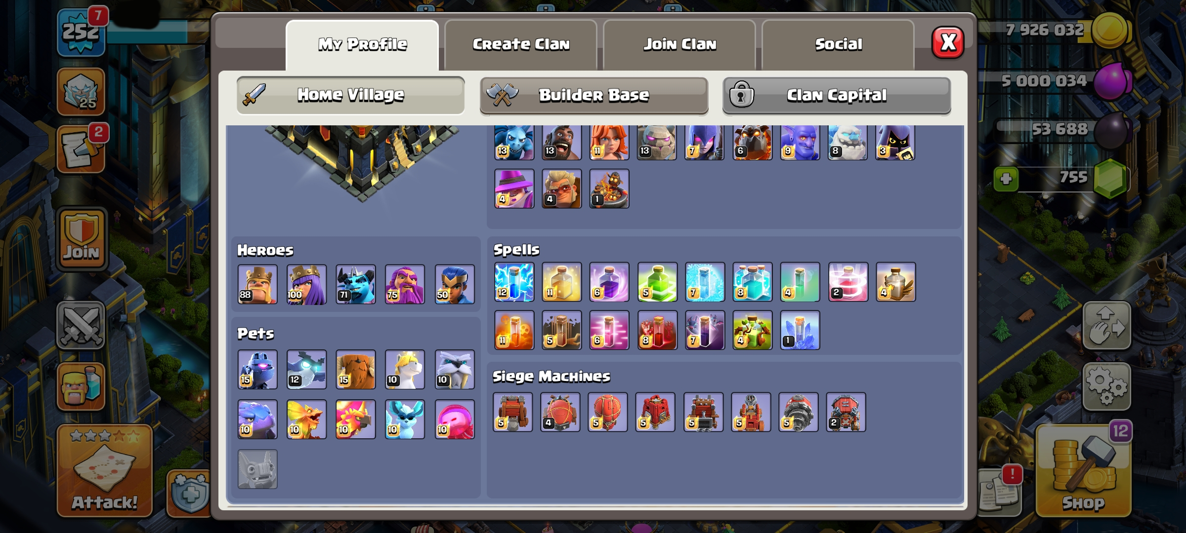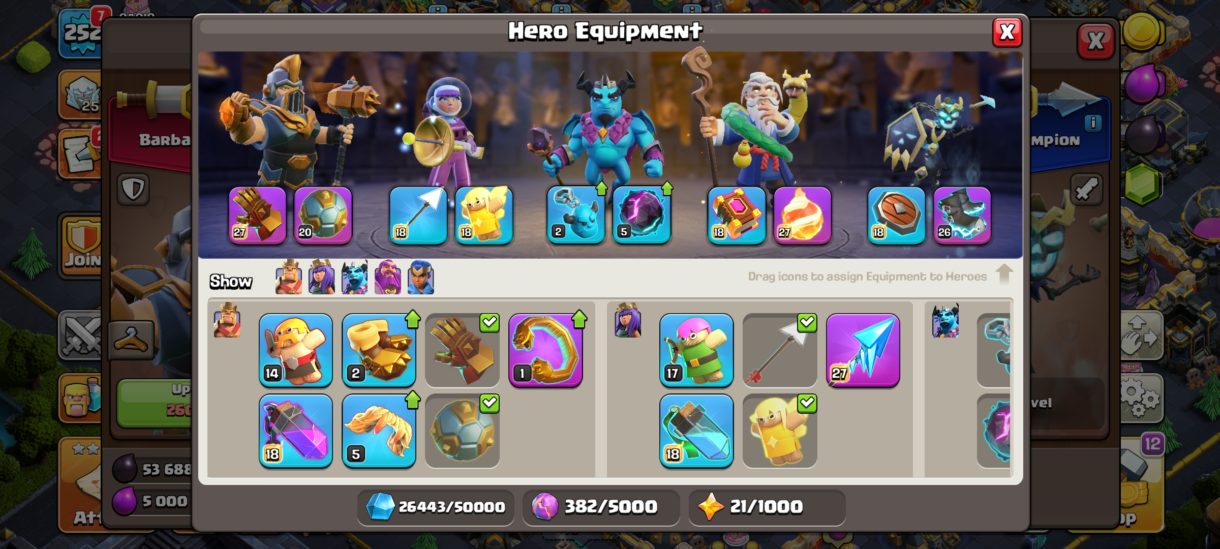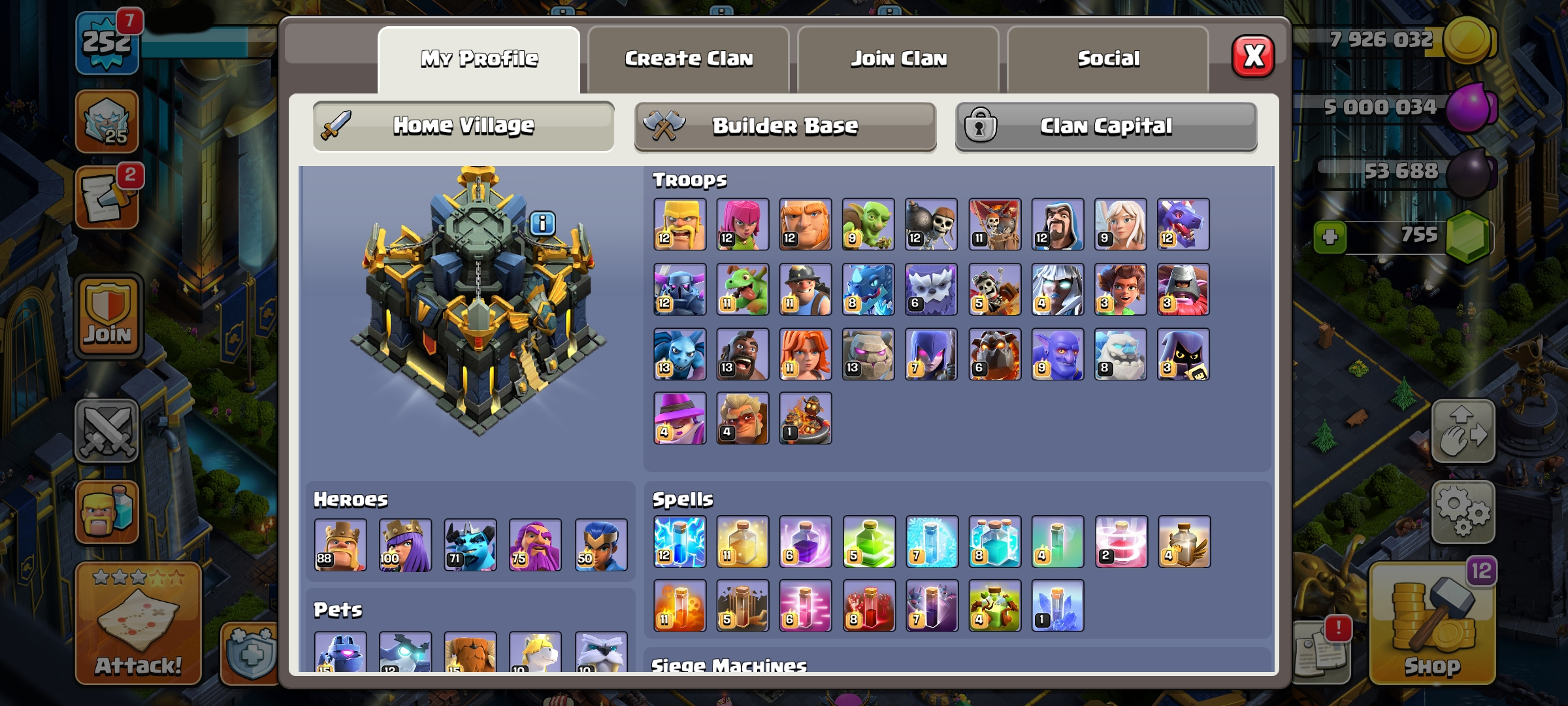 CC-19 TH17 Max/LV 252 [ Epic Equipment Max 3 ] Heroes 87/100/70/75/50 | 3 Maxed Heroes | Scenery Justice| Good Walls & Troo