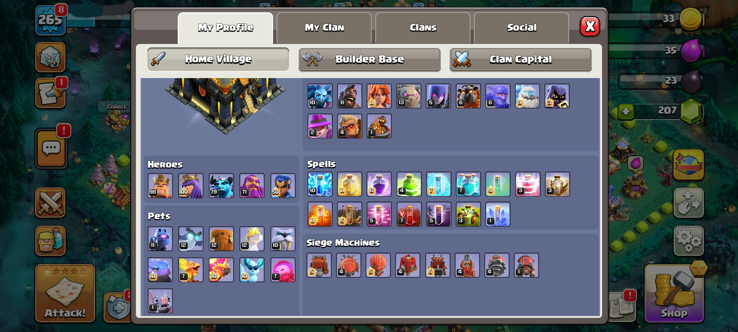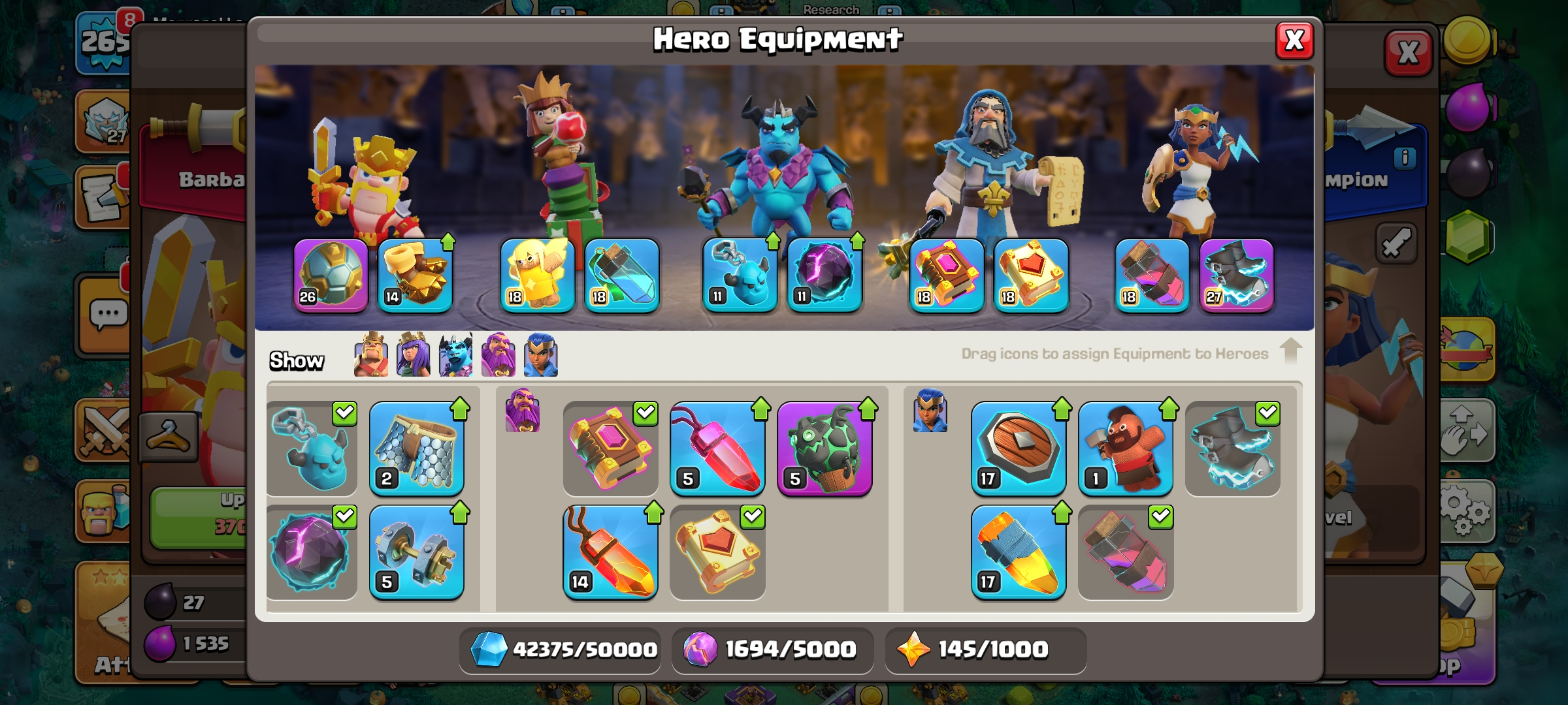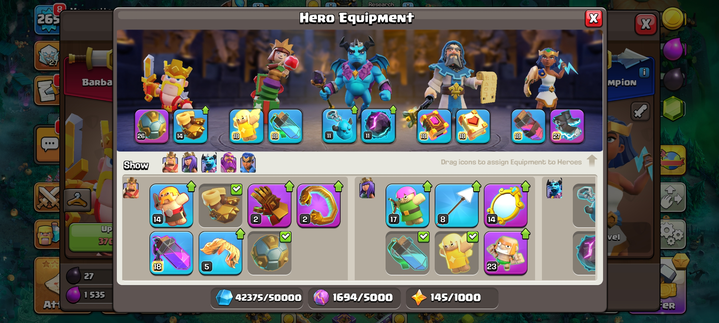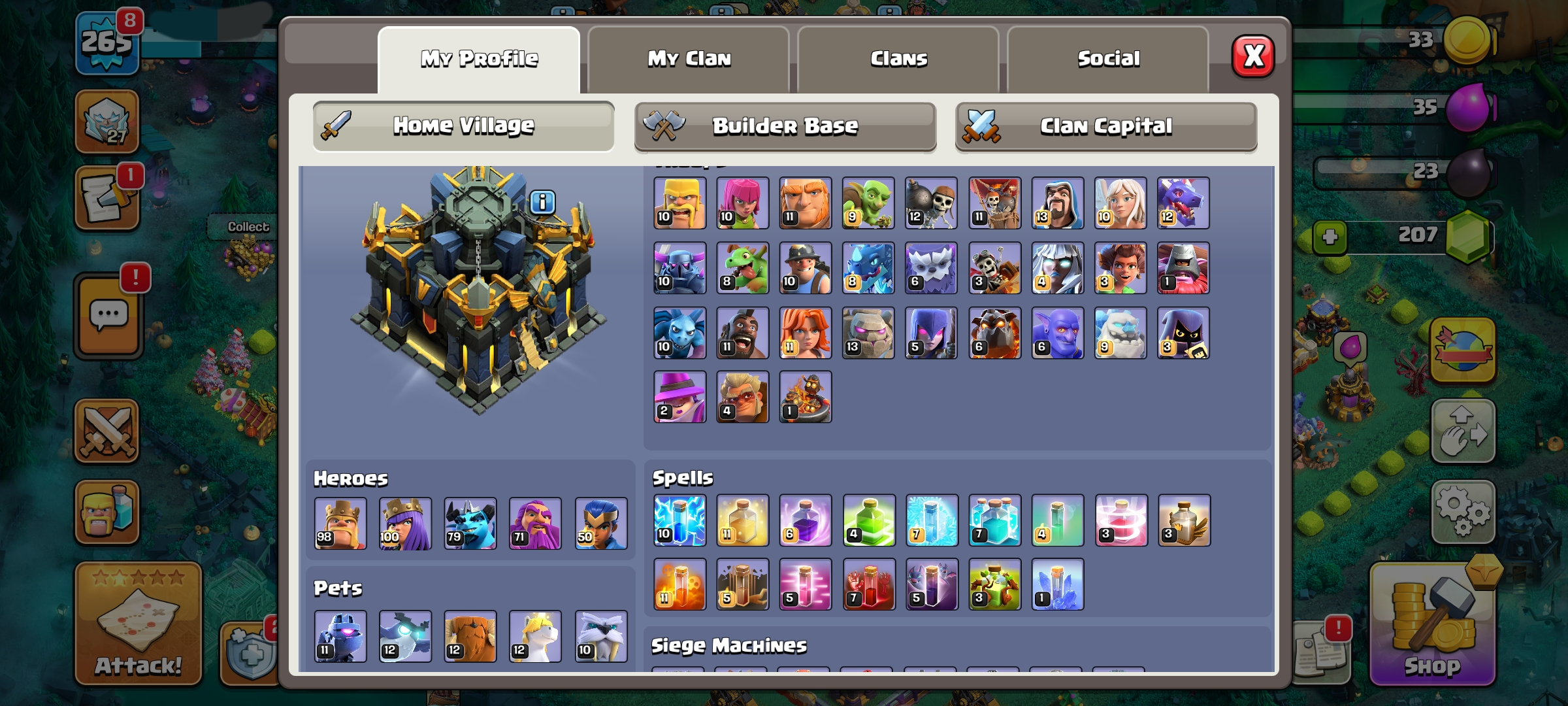 CC-89 TH17 Max/LV 265 [ 7 Epic Equipments ] Heroes 98/100/79/70/50 | 2 Maxed Heroes | 25 Hero Skins | Pumpkin Graveyard & Paint