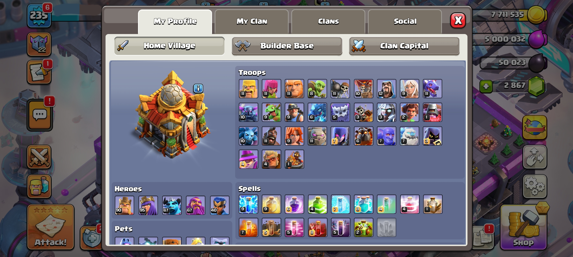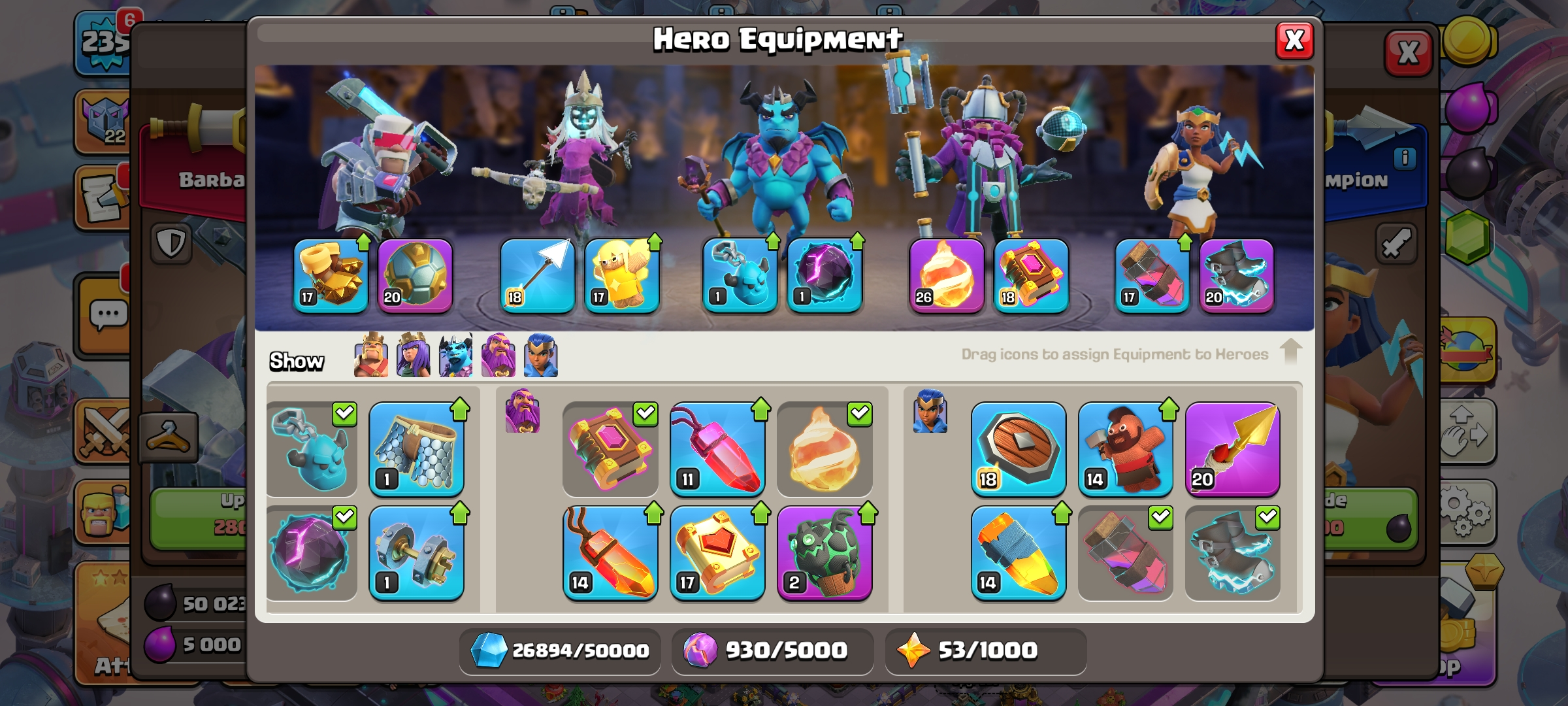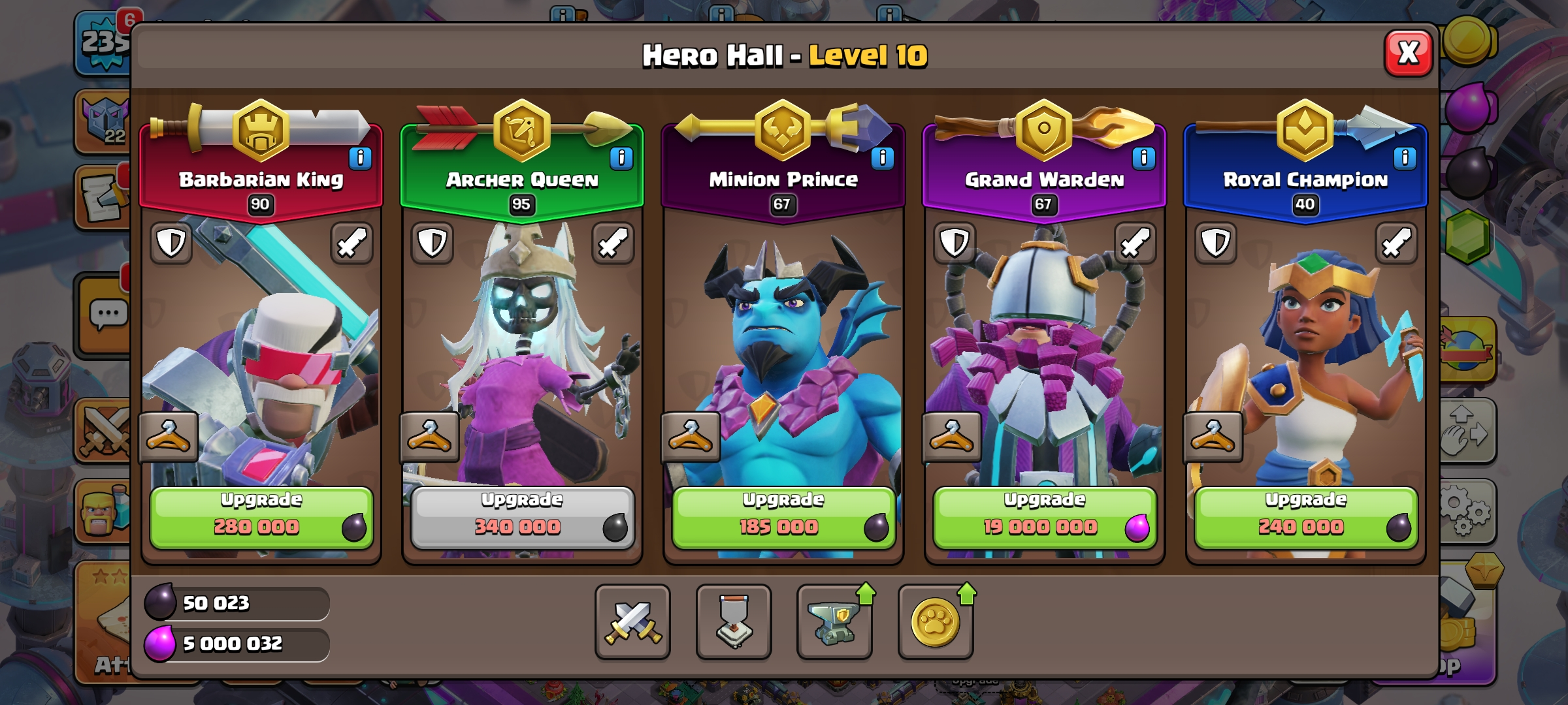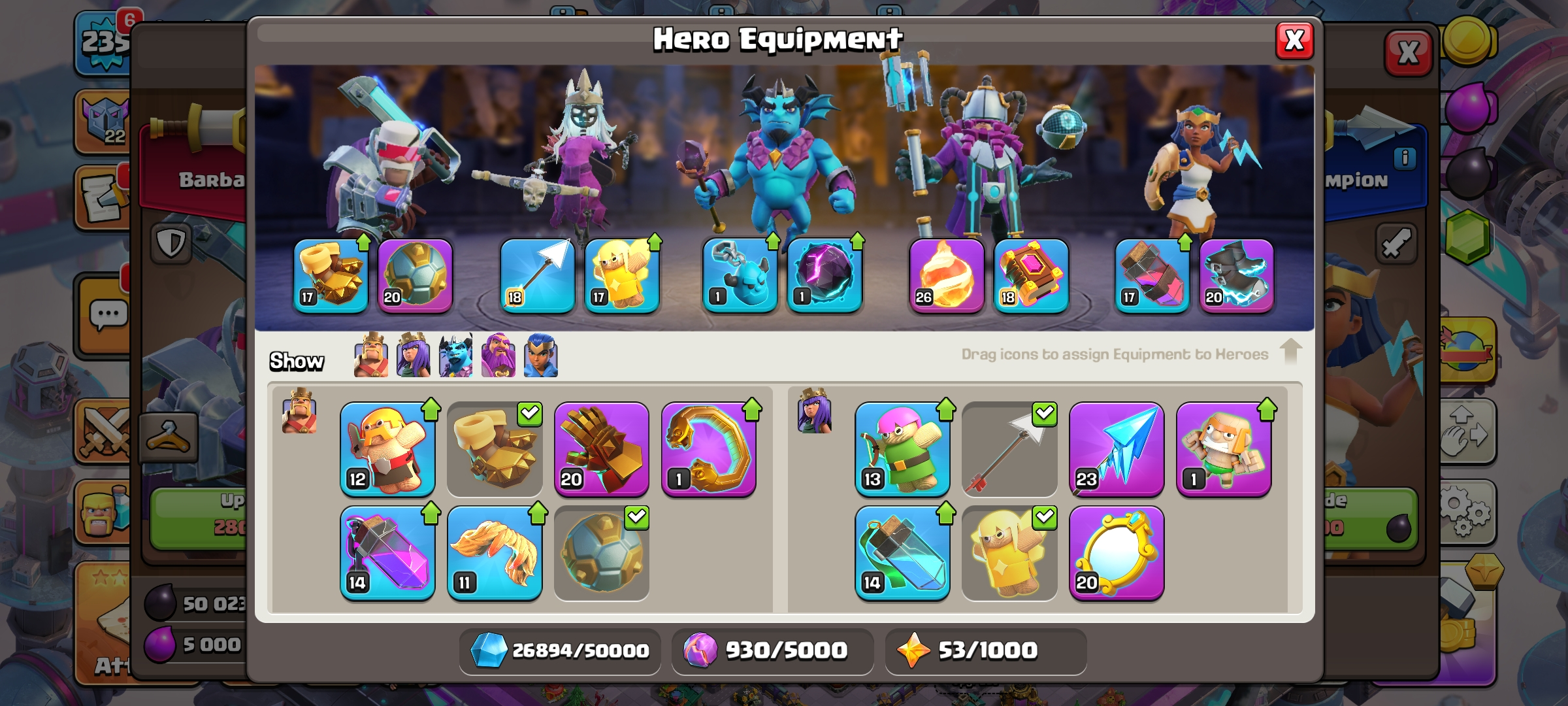 CC-93 TH16/LV 235 [ 10 Epic Equipments ] Heroes 90/95/67/66/40 | 1 Maxed Heroes | 14 Hero Skins | Future Scenery | Good Skins