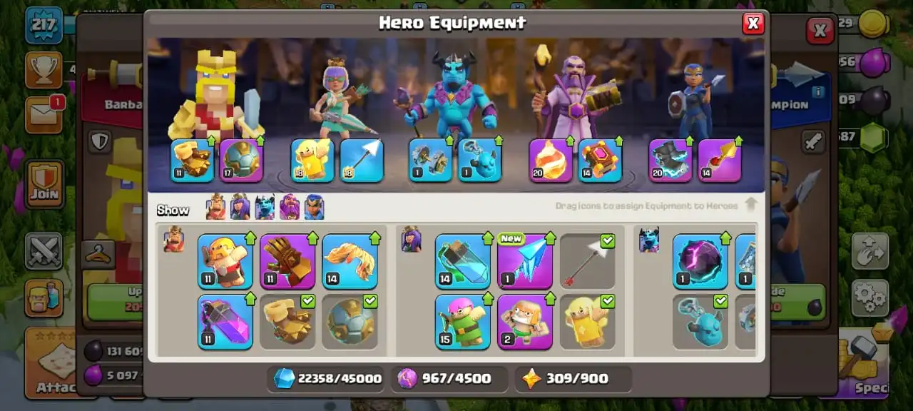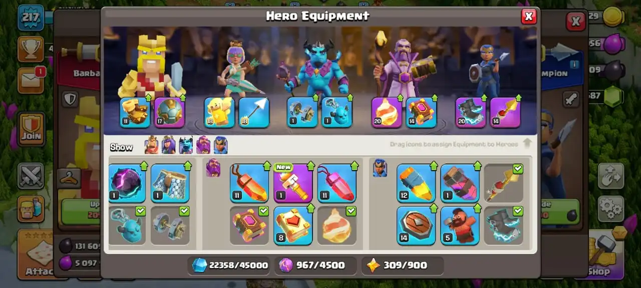 Cheapest🔥TH 15 max defense🔥high heroes level 82/85/55/57/36☠️8 epic equipment⚒️6 builder’s⭐️525 cwl medal✅6 heroes skin