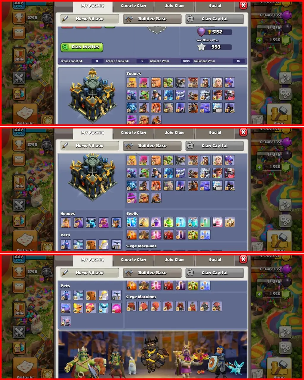 E.S | Spain Local | Most Rare Local | Th 17 Full Max | Nothing Left | Ready For Th 18 | 31 Skins | Craftland Dfnc Max | Buulder Appreciate and Alchemist Max | 500 Nc | Full Fire Profile | BB Max | Max Epics