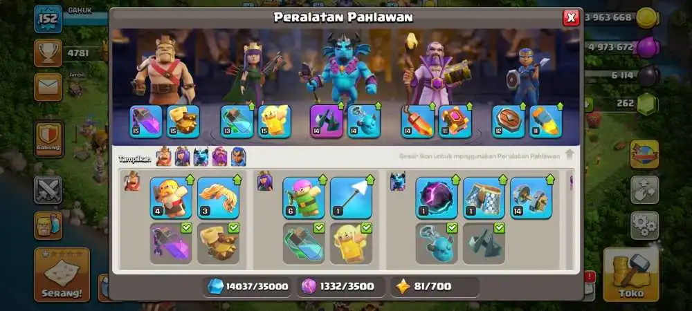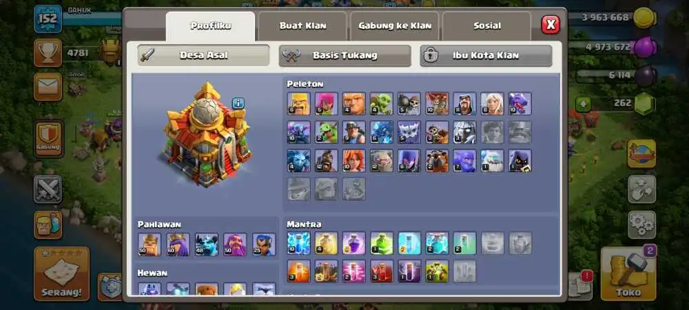 IT 538⚡TH 16 YELLOW WALL AND EPIC SKILS⚡LVL 152🛡KING 50🛡QUEEN 60🛡WARDEN 50🛡RC 25🛡MANY MAGIC STUFF+MANY LEAGUAE POIN🛡SAFE ACCOUNT⚡