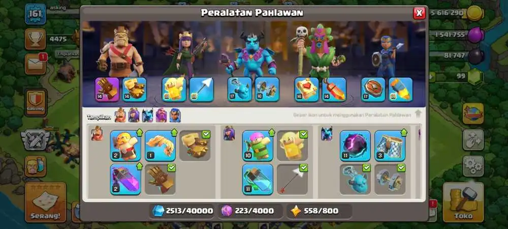 IT 571⚡TH 14 BLUE WALL AND 2 MAX SKILS⚡LVL 161🛡KING 60🛡QUEEN 67🛡WARDEN 52🛡RC 30🛡MANY MAGIC STUFF+MANY LEAGUAE POIN🛡SAFE ACCOUNT⚡