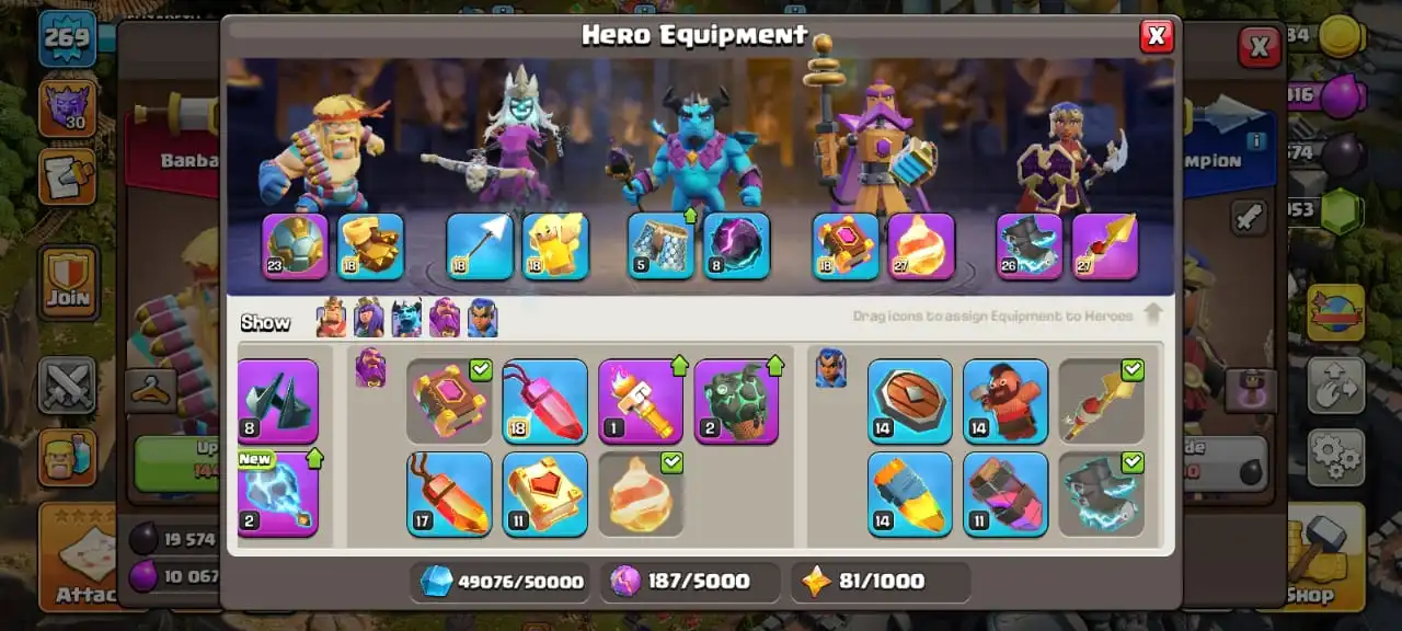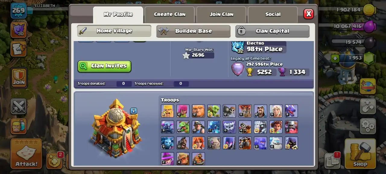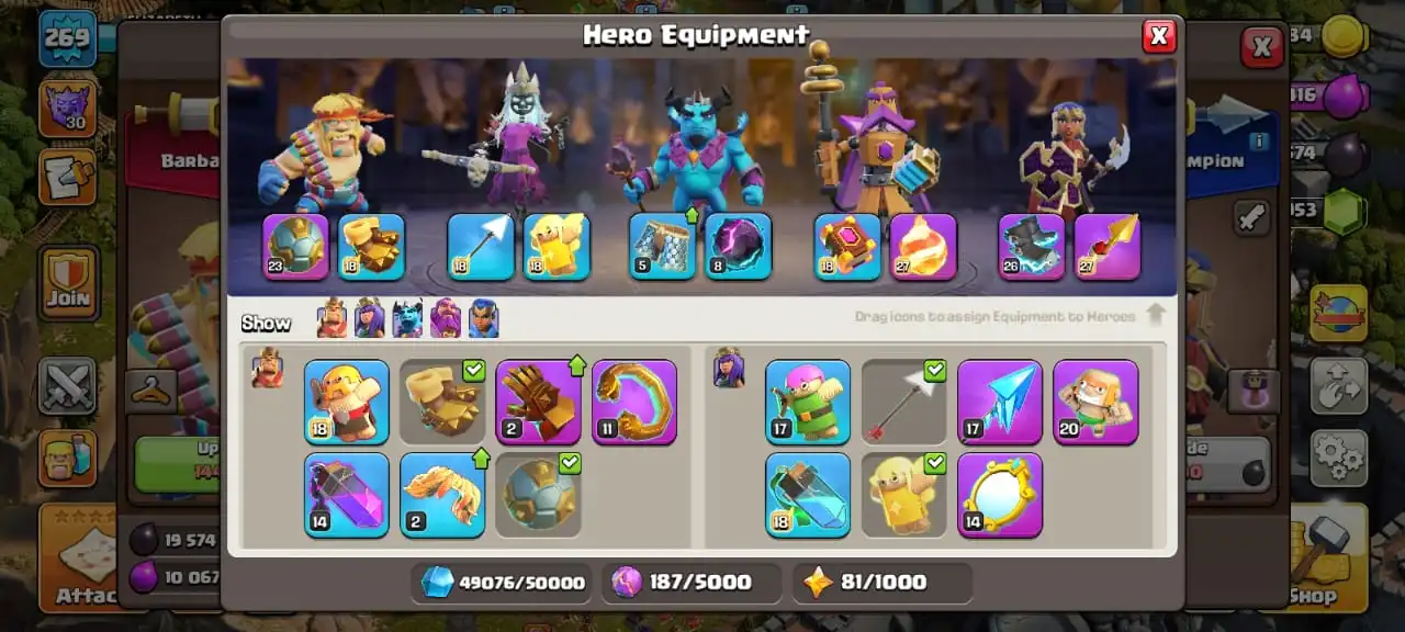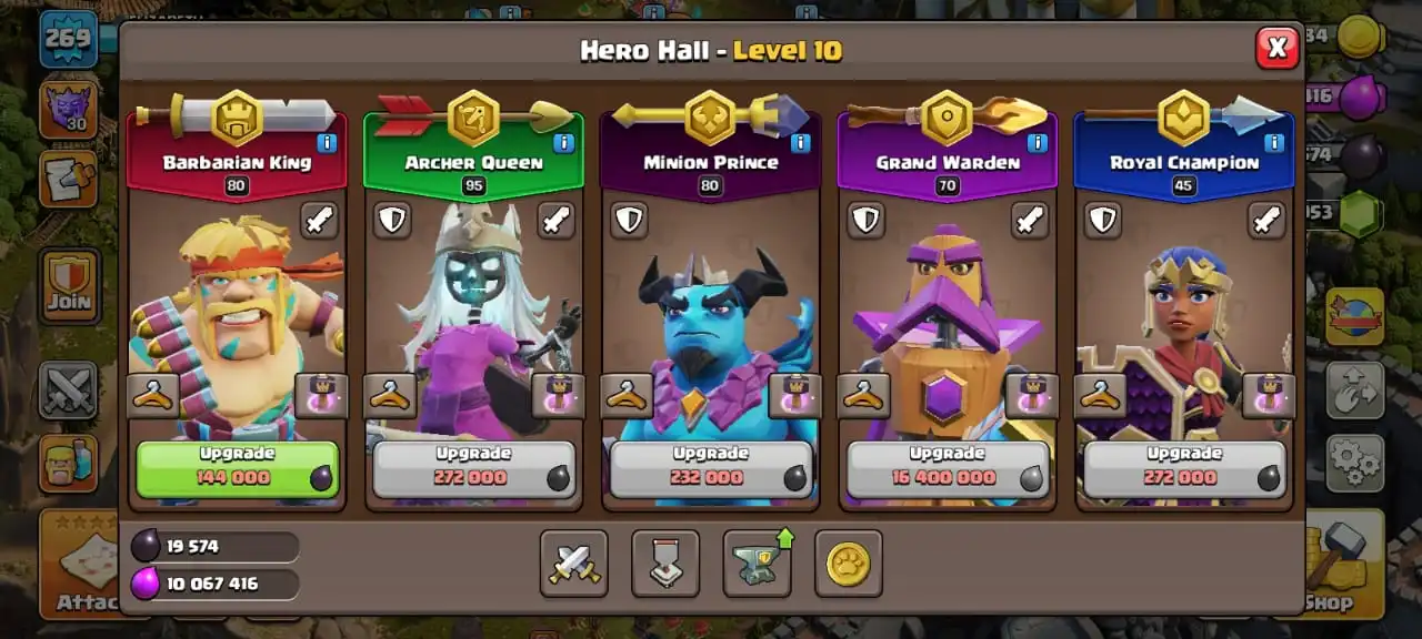 Legendary scenery✅TH 16 max🔥high heroes level 80/95/80/70/45☠️full equipment 33/33⚒️max builder base✅cn on⭐️1764 cwl medal✅13 heroes skin