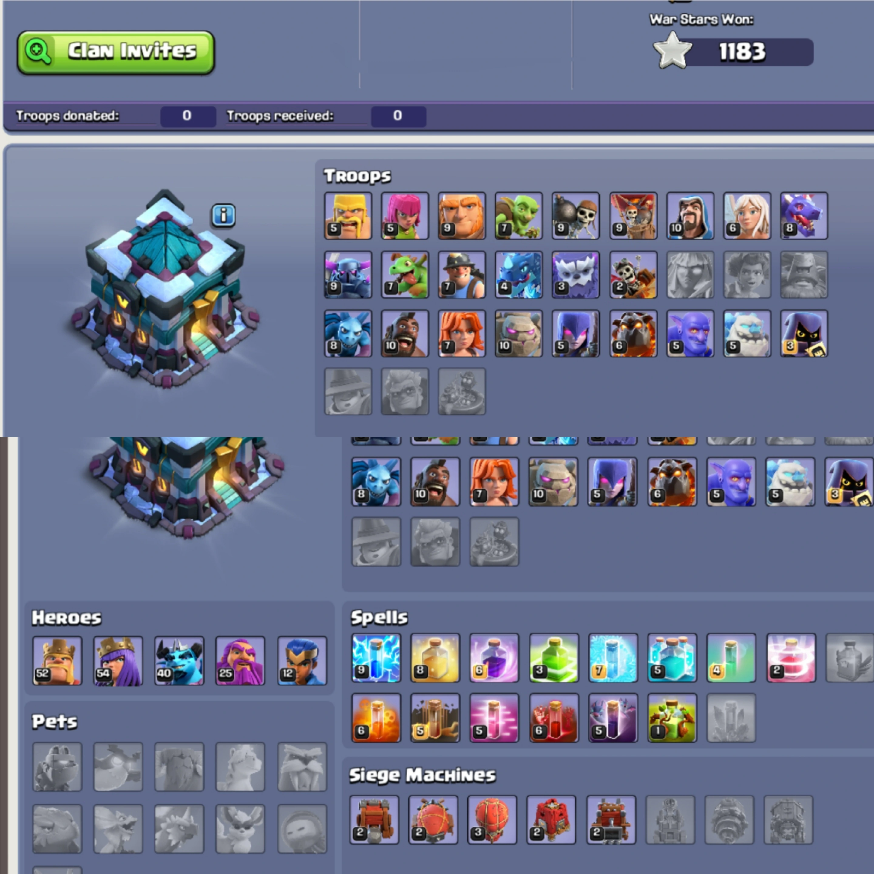 π[PARTY HERO SKINS]β€οΈβπ₯+[GHOST QUEEN SKIN] -π[1100+WARSTARS]π₯Ί TH13 SEMI |π₯Ί HERO:52-54-25-12 β€οΈ| XP:143 π| CWL MEDALS π| MAGIC ITEMπ₯² | PIXEL SCNERY β