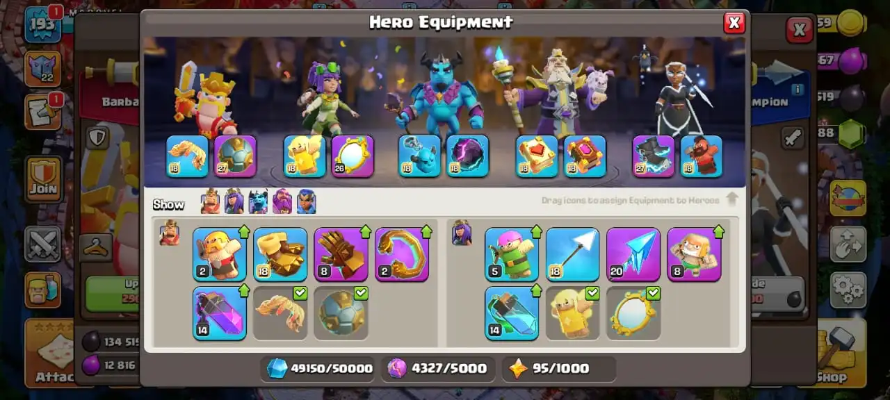 RARE✅year of the snake legendary scenery🔥TH 16 ready to war🔥high heroes level 91/95/71/69/45☠️full equipment 33/33⚒️6 builder’s✅free name change⚒️2 helper max✅3 scenery and 12 heroes skin
